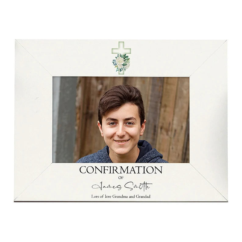 Personalised Confirmation Photo Frame Gift With Green Cross