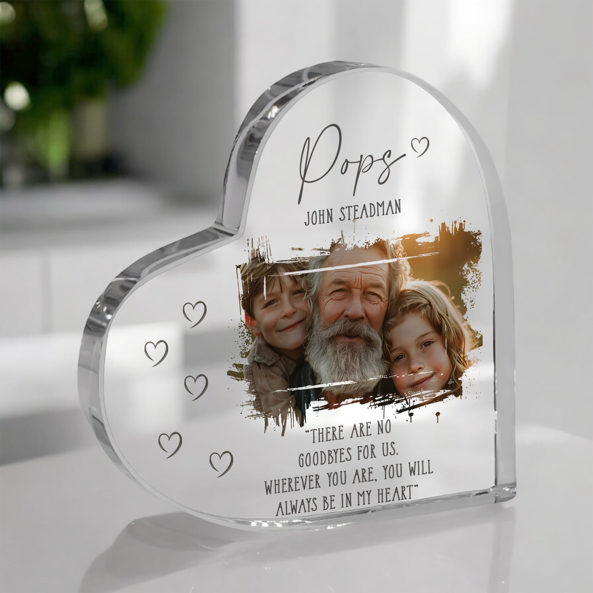 Pops Memorial Keepsake | Acrylic Block Remembrance Heart with Photo | Bereavement Sympathy Condolence Gift | 10x10x2cm