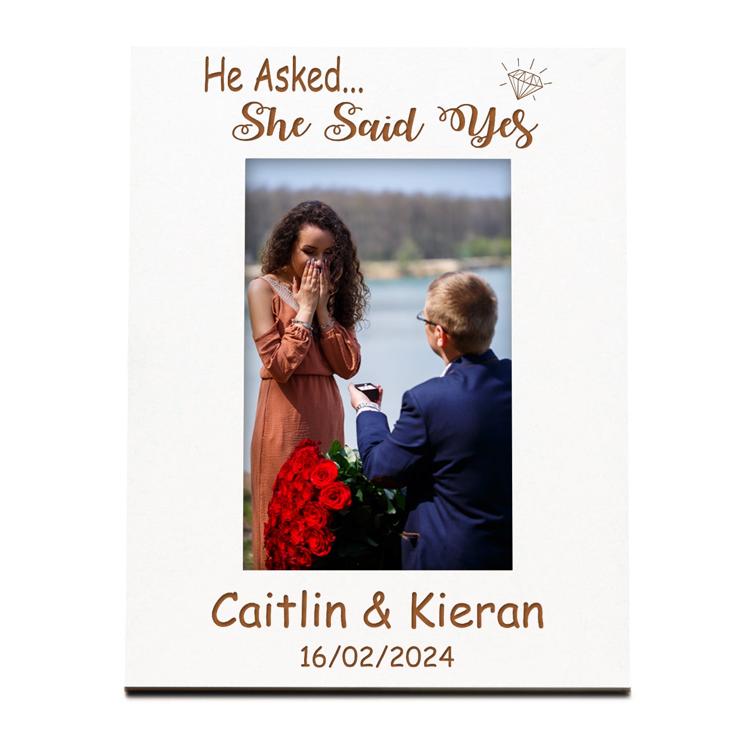 Personalised Engagement Memories White Wooden Photo Frame Gift