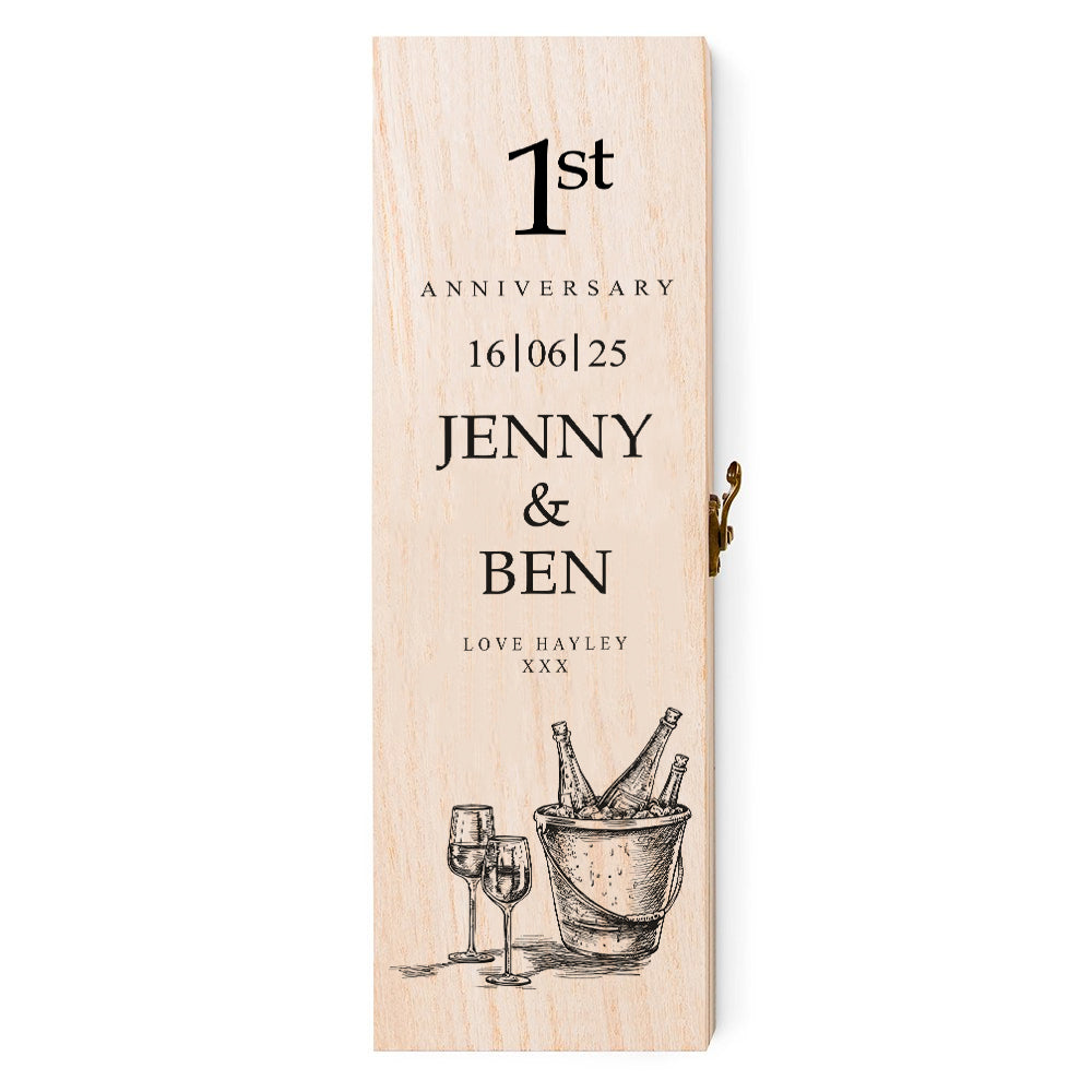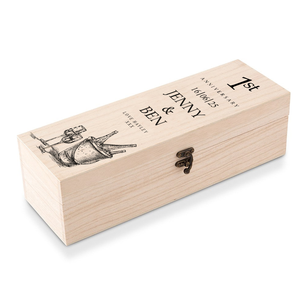 This personalised anniversary wine or champagne box gift is the perfect 1st anniversary gift. Made from high-quality wood, it is sure to impress, and its personalised engraving adds a thoughtful final touch that is sure to be cherished. Give your loved one an unforgettable anniversary present!