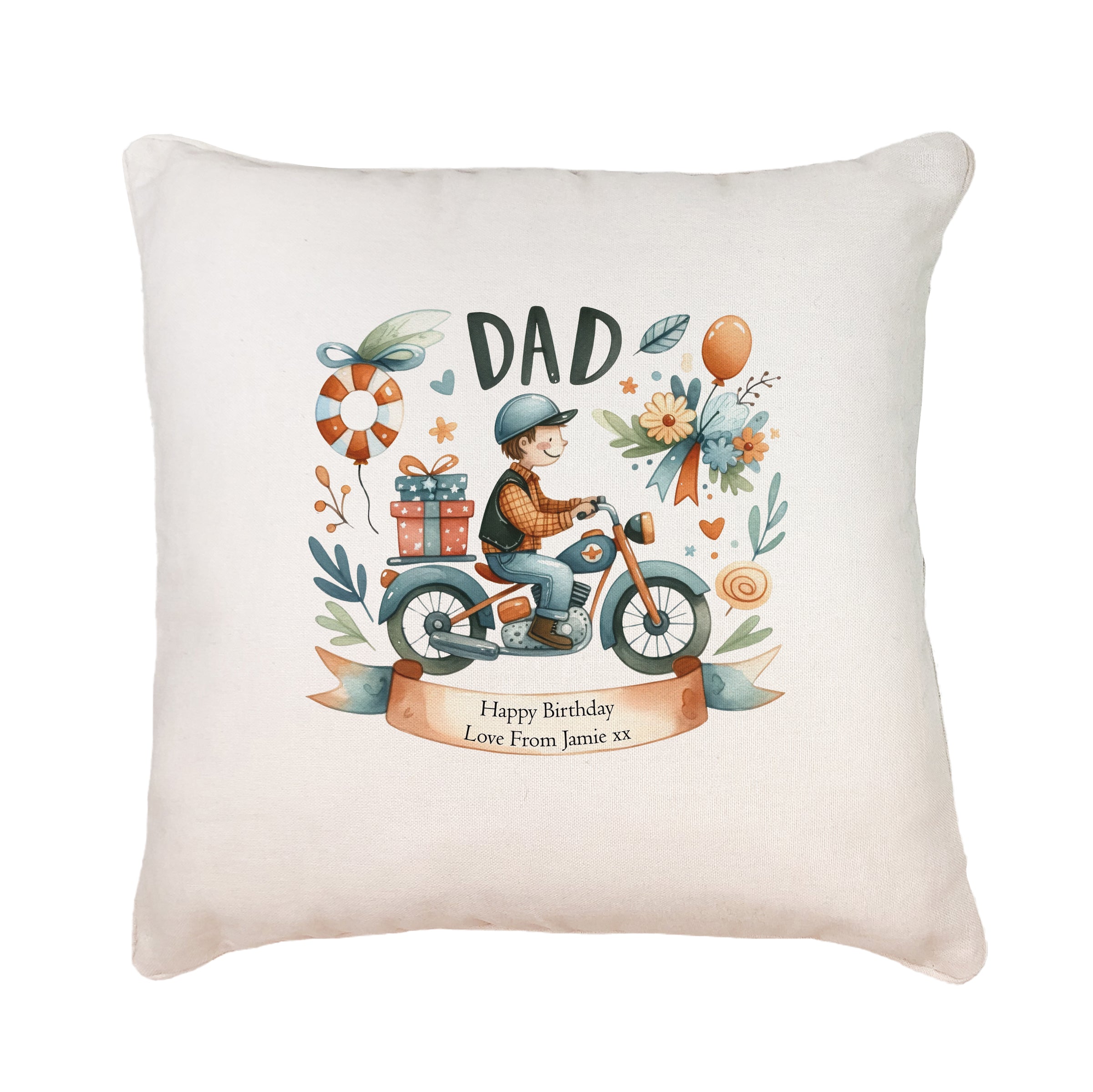 Make their special day even more memorable with our Personalised Dad Cushion Pillow Gift. This high-quality 40x40cm cushion cover is made with soft linen and features a personalised design that's sure to bring a smile to their face. The zip closure adds a touch of convenience, making it the perfect addition to any home. The cushion comes filled with a pillow.