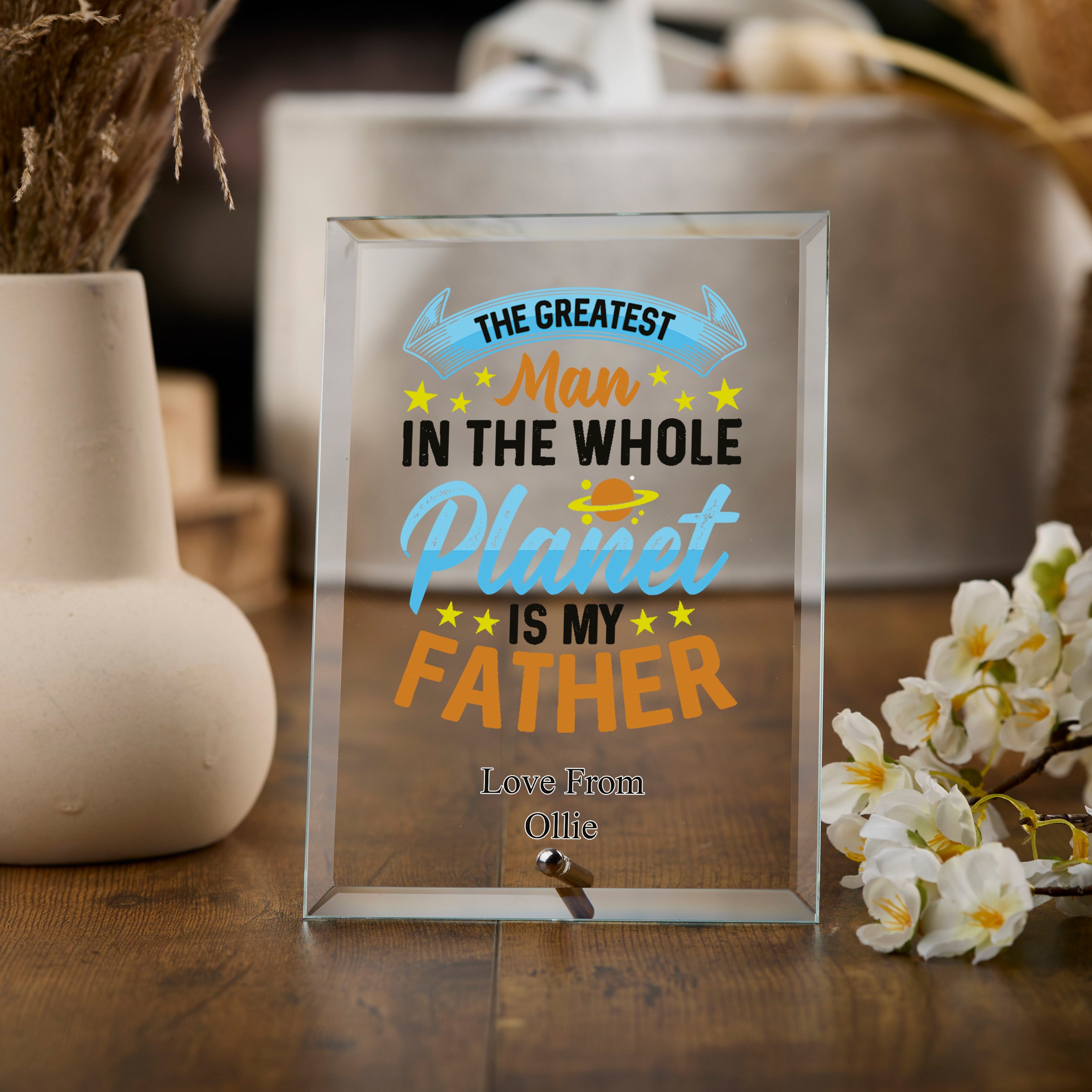 Personalised Special Dad Trophy Plaque Gift With Colour Print Highlight your father's achievements with a beautiful, personalised trophy plaque that he can display with pride. The vibrant and colourful print will make this gift truly stand out and honour your Dad in a special way.