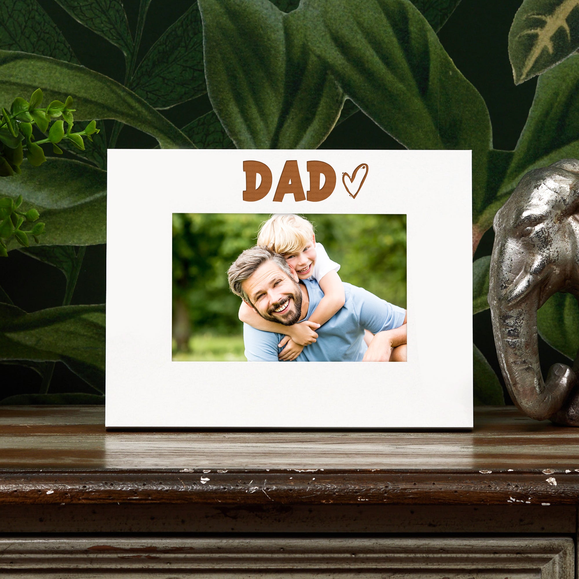 White Engraved Dad Heart Photo Frame Gift Landscape