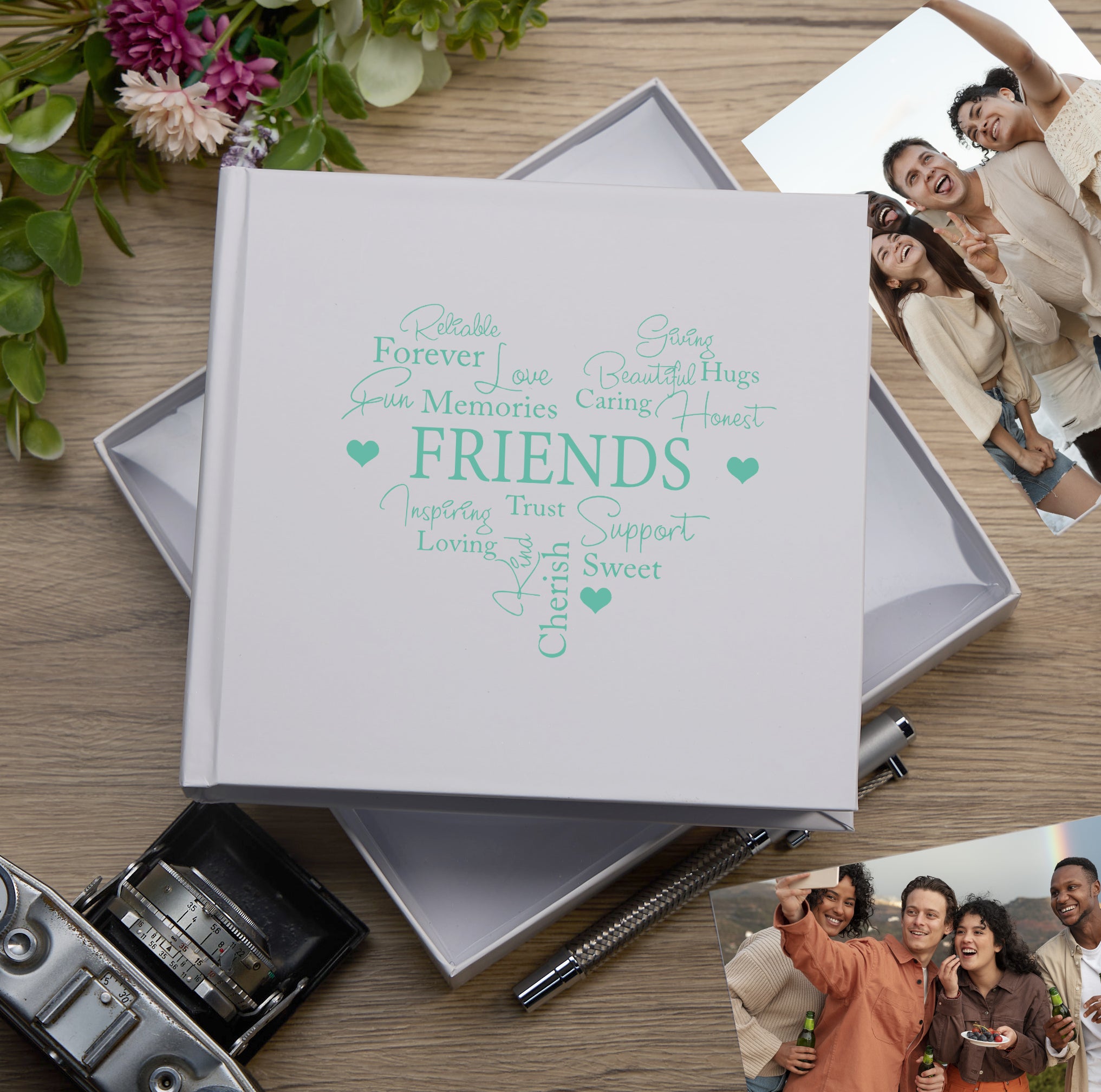 Friends Word Heart White Photo Album Gift For 50 x 6"x4"
