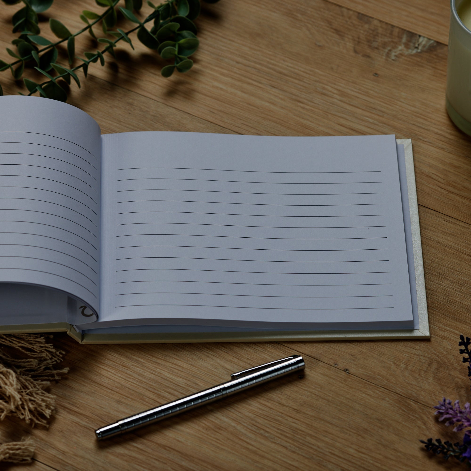 Finding the right book for this particular occasion is often one of the hardest things to do. This particular Condolence book is covered with flowers on the front, while on the first page there is space for a name and photograph. There are approximately 50 pages that are lined. Memory Funeral Book / Book Of Condolence or Remembrance Measures: H:17 W:23 D:2 cm
