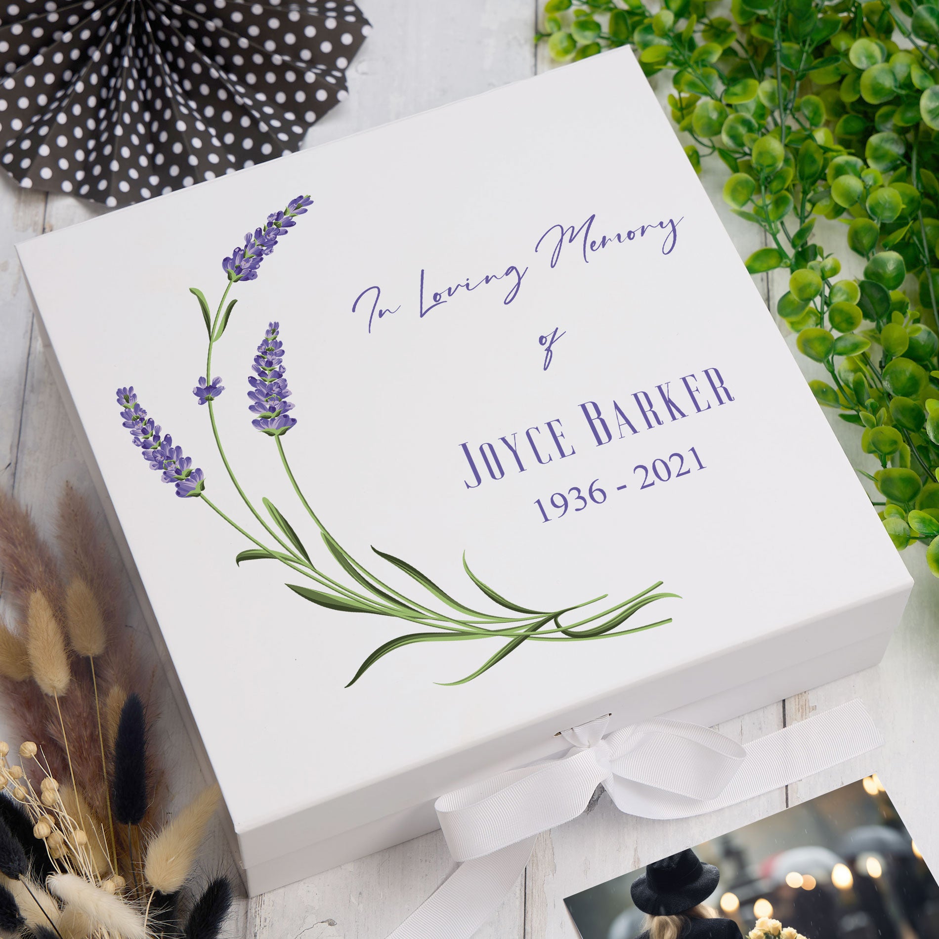 Personalised In Loving Memory Remembrance Keepsake Box Lavender design