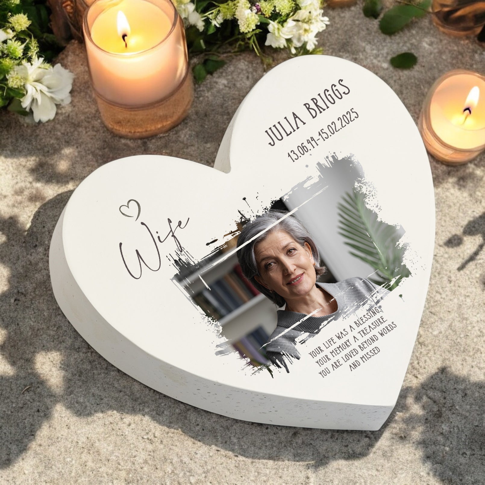 Personalised Wife Sympathy Memorial Heart Gift With Photo