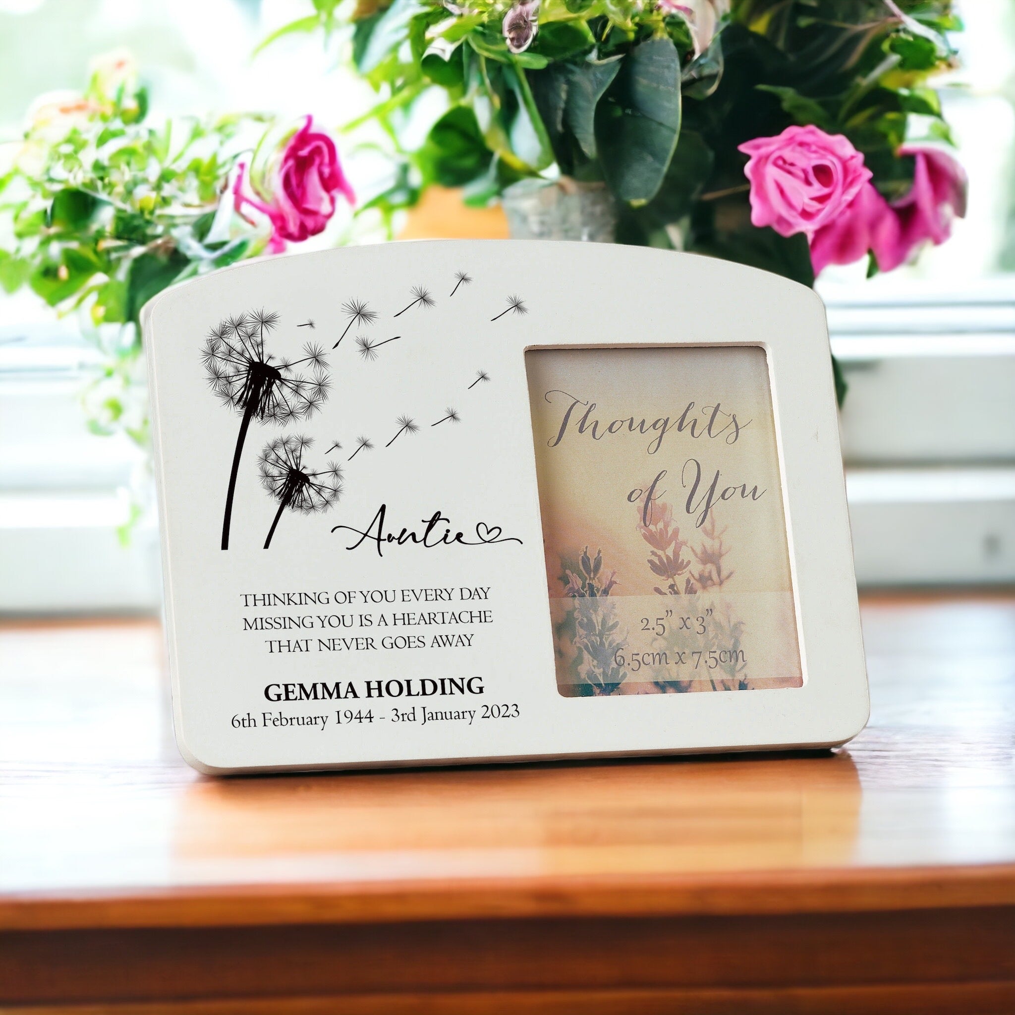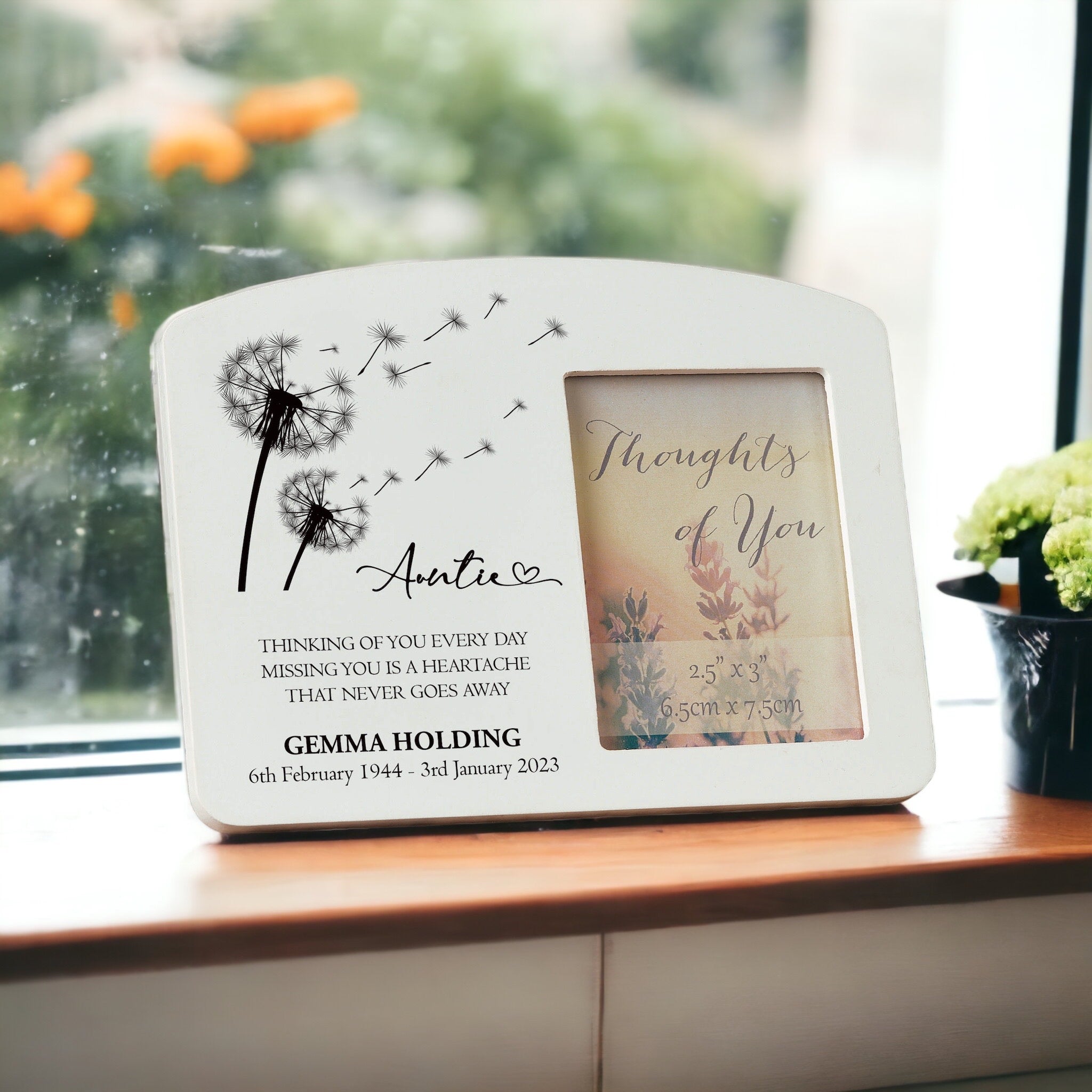 Memorial Photo Frame for Auntie with Dandelions This MDF Photo Frame serves as a touching tribute to...