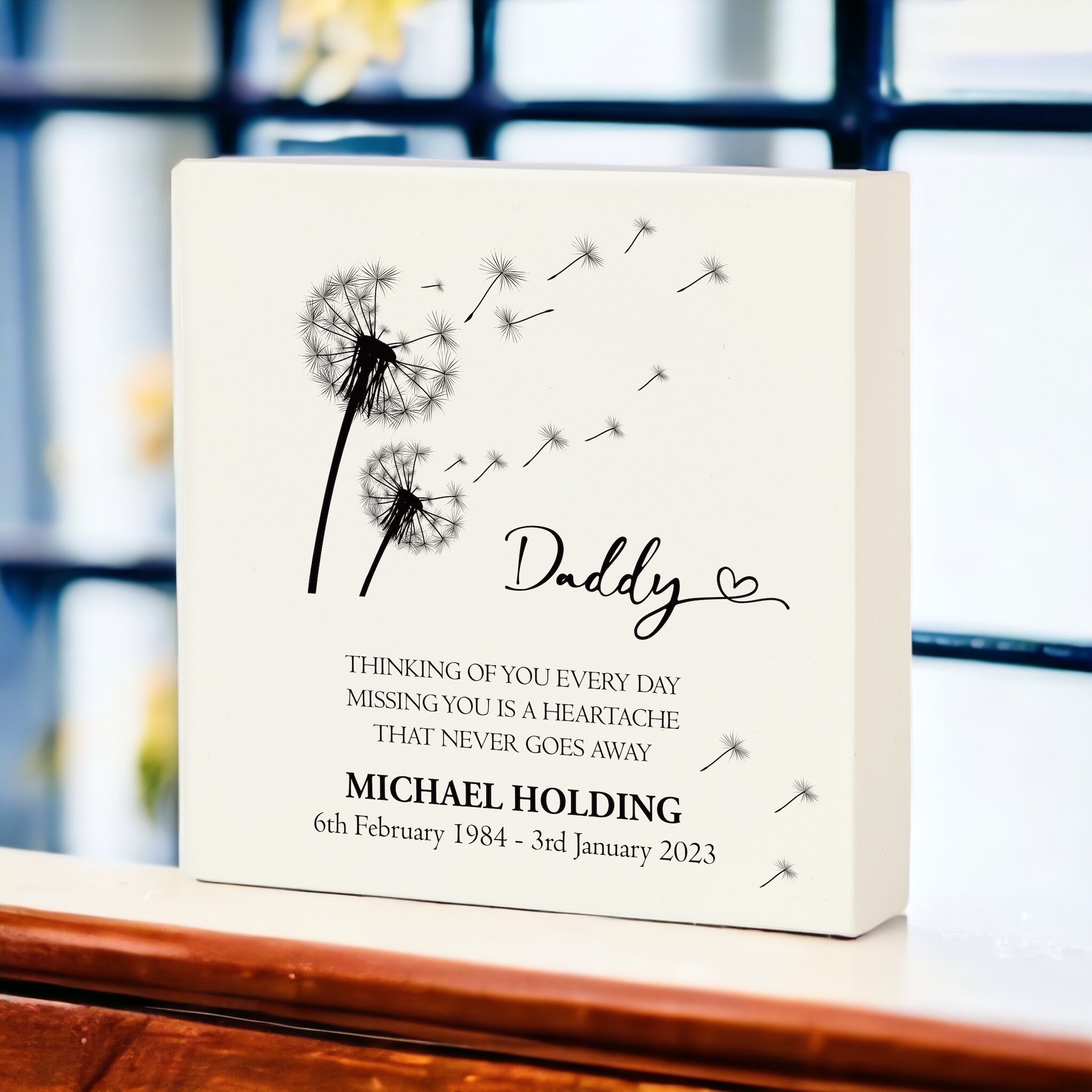 A Personalised Daddy Graveside Remembrance Plaque Ornament is the perfect tribute to the memory of a beloved Dad . This in-loving-memory ornament features personalised text, making it a beautiful keepsake to honour your Daddy and keep their memory alive. Its thoughtful design and elegant finish are sure to make it a treasured reminder for years to come.