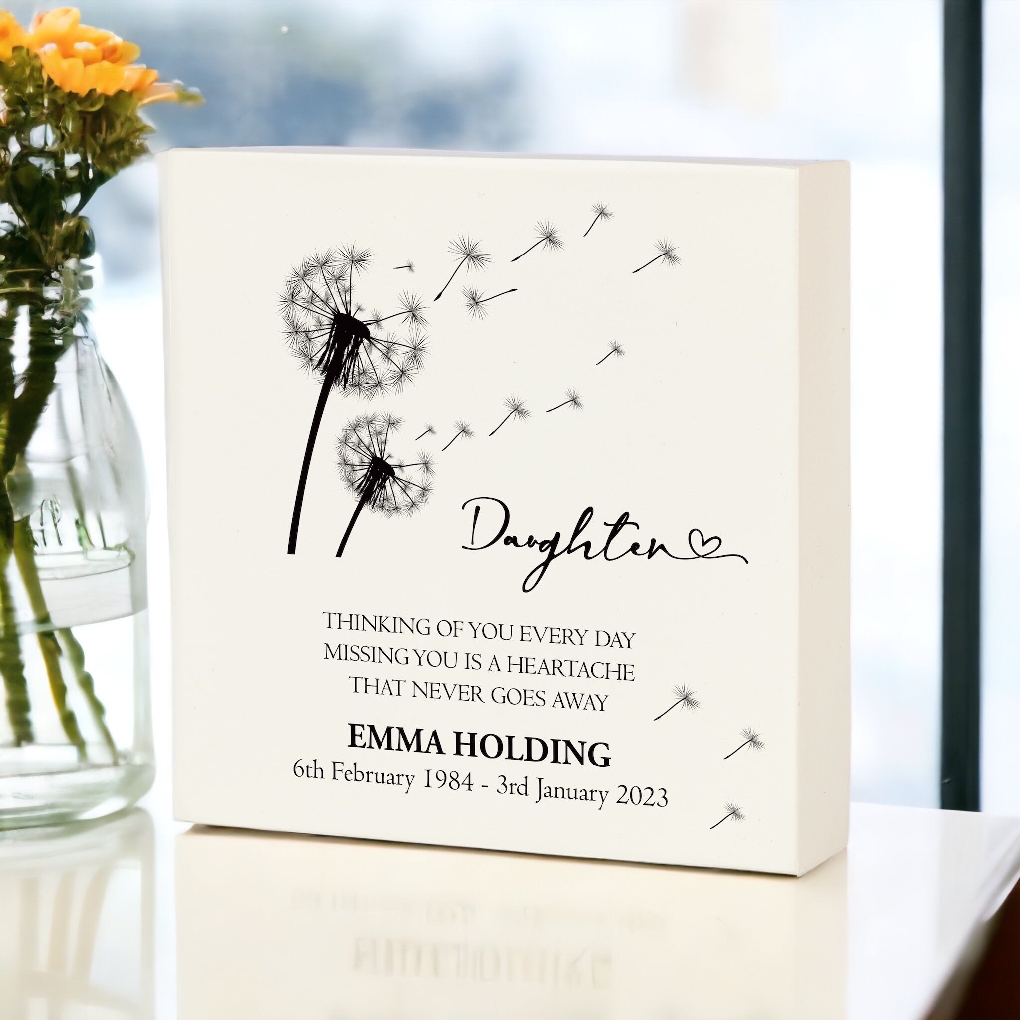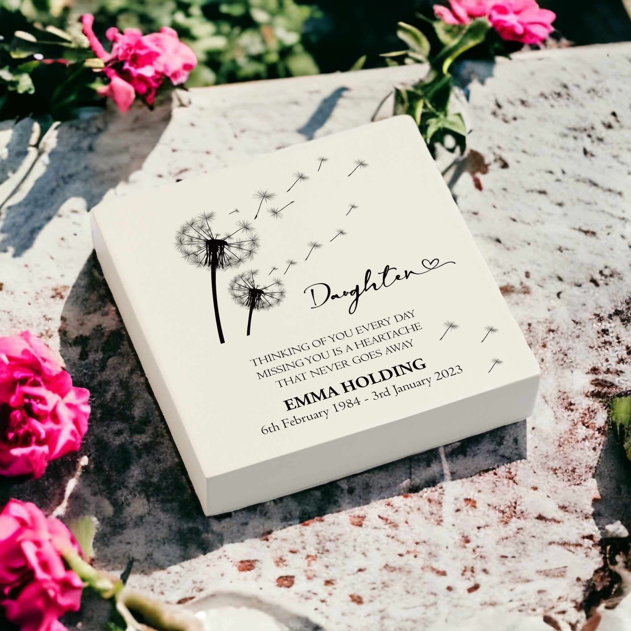 A Personalised Daughter Graveside Remembrance Plaque Ornament is the perfect tribute to the memory of a beloved Daughter . This in-loving-memory ornament features personalised text, making it a beautiful keepsake to honour your Daughter and keep their memory alive. Its thoughtful design and elegant finish are sure to make it a treasured reminder for years to come.