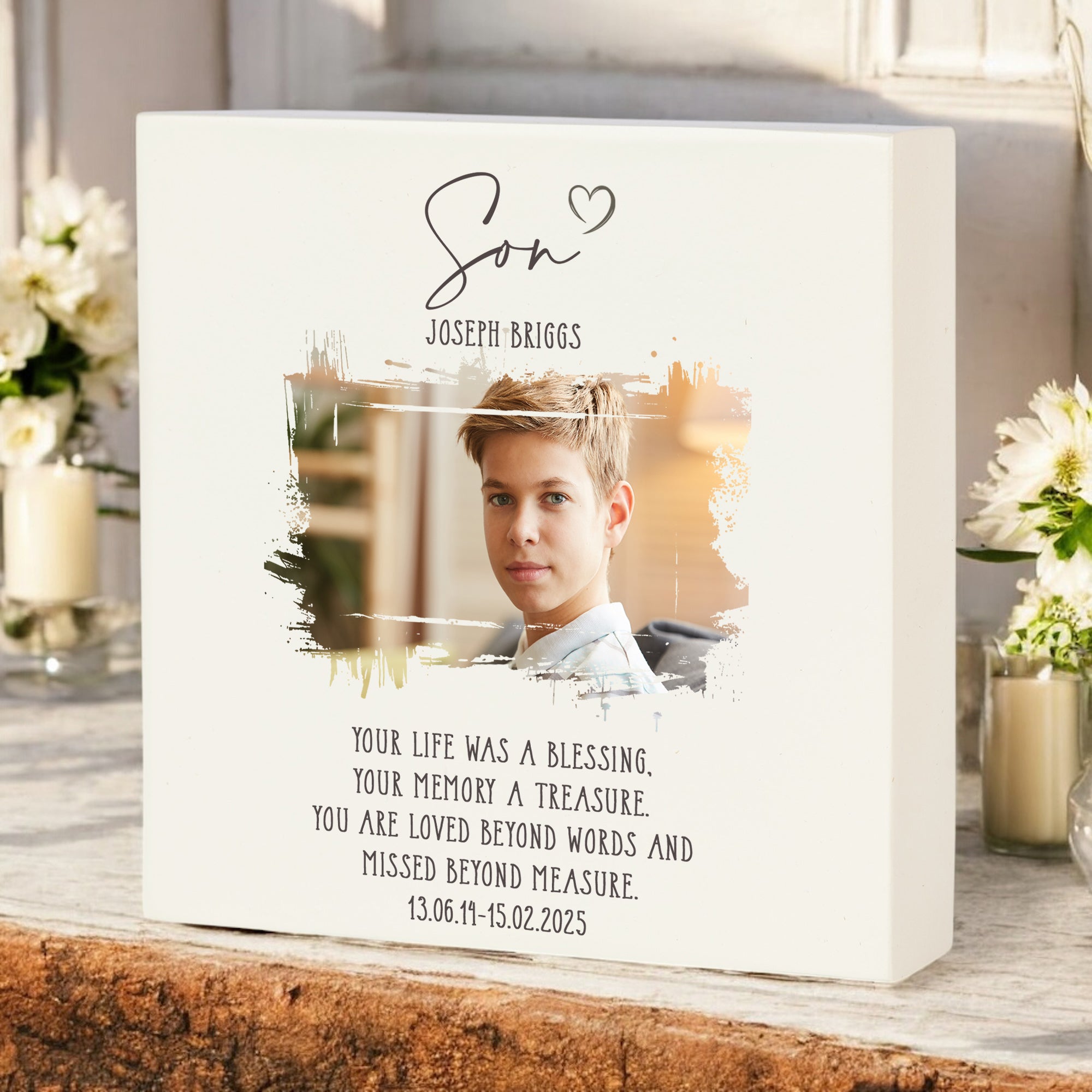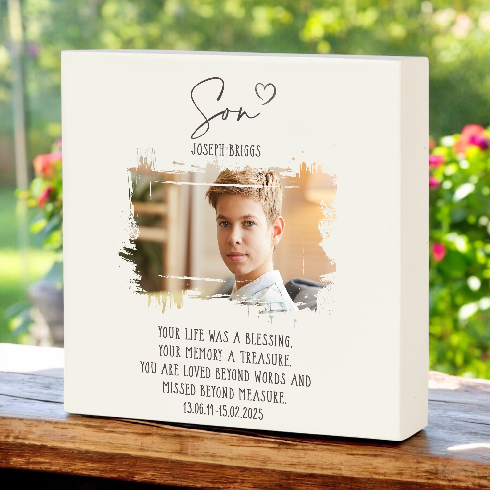 This customisable Son Memorial Sympathy Block can be used both indoors and outdoors, and comes with a printed...