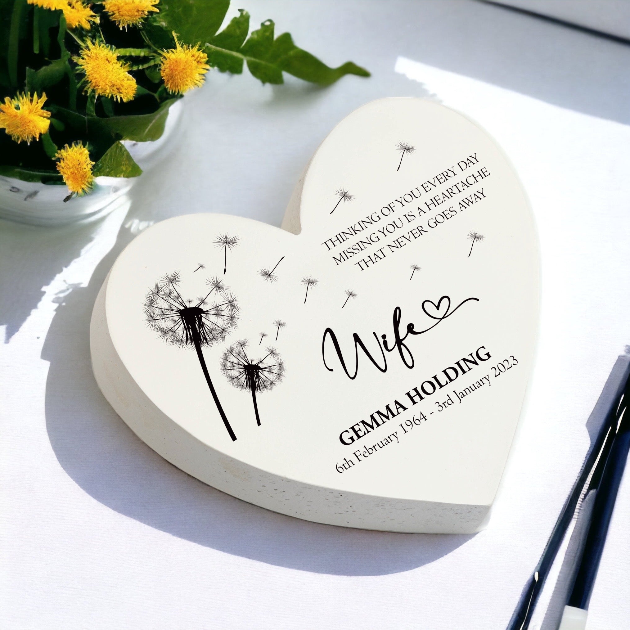Personalised Wife Heart Remembrance Plaque.  Honour and remember a lost loved one with this heart shaped wife graveside...
