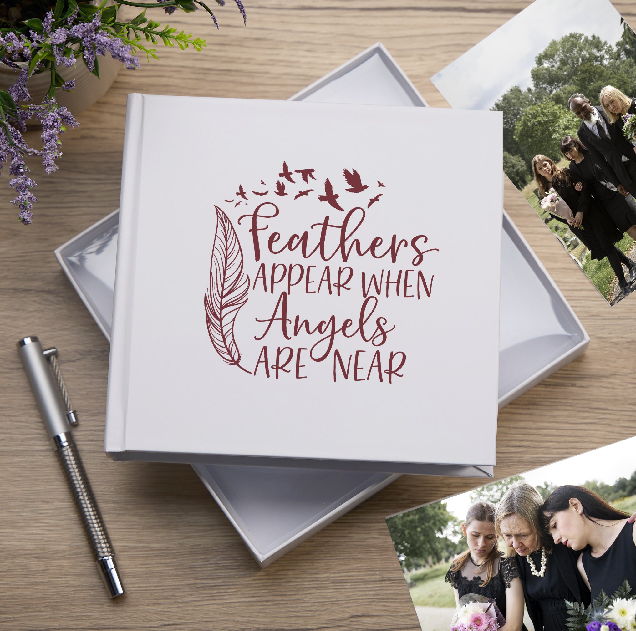 Feathers Appear White Memorial Remembrance Photo Album For 50 x 6 by 4 Photos