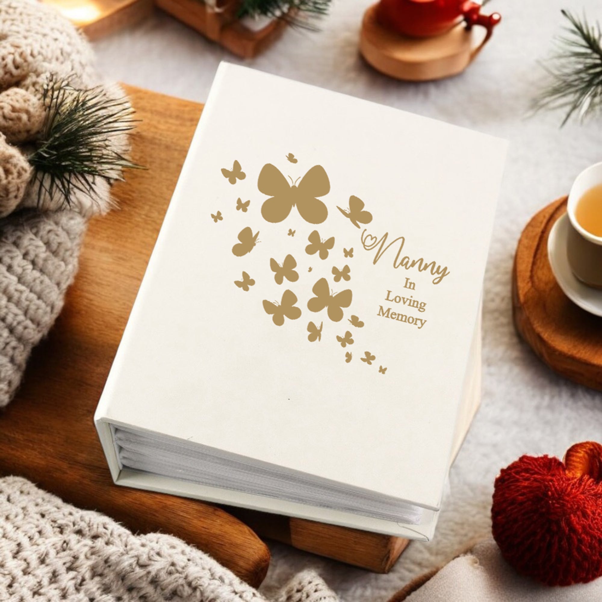 Nanny In Loving Memory Butterfly Design Memorial Remembrance Photo Album With Sleeves 100 x 6x4 Capacity