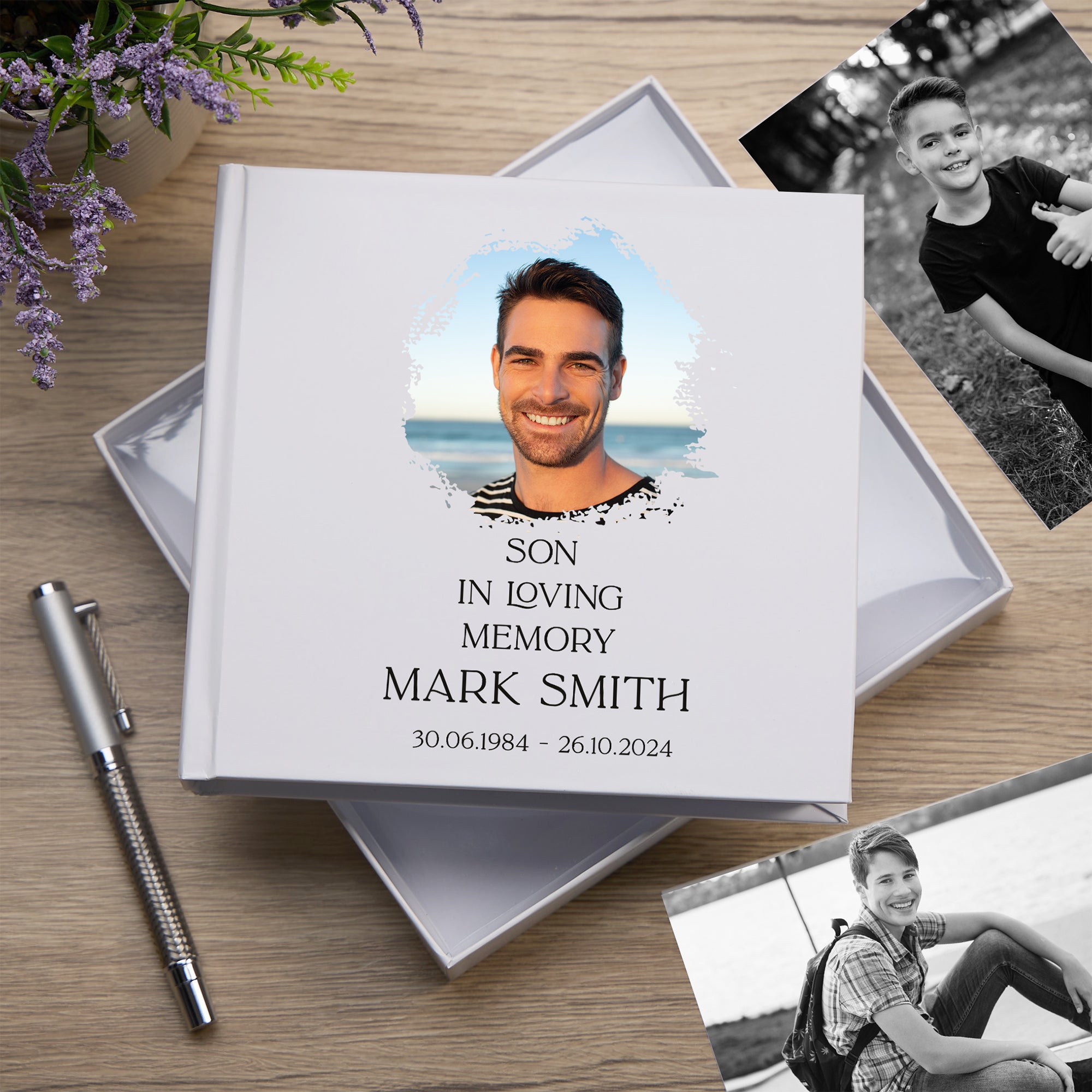 Keep your memories safe and close with our Son In Loving Memory White Album, equipped with space for up to 50 photos 6x4. Add their name and favourite photos to create a one-of-a-kind keepsake. Measuring approximately 18.5cm x 19.5cm, it's the ideal size for storing your treasured memories. Plus, each album comes in a protective box for safekeeping.