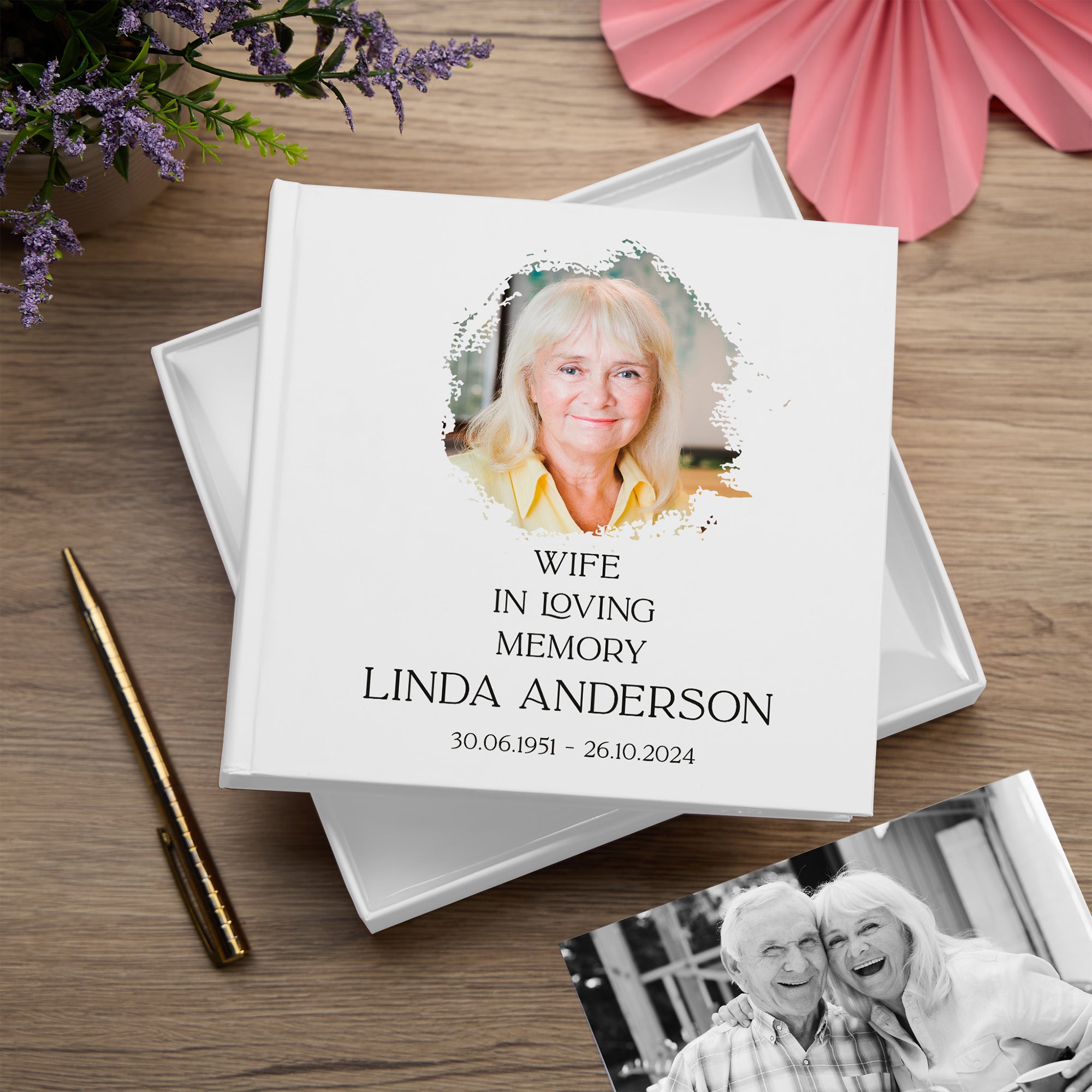 Keep your memories safe and close with our Wife In Loving Memory White Album, equipped with space for up to 50 photos 6x4. Add their name and favourite photos to create a one-of-a-kind keepsake. Measuring approximately 18.5cm x 19.5cm, it's the ideal size for storing your treasured memories. Plus, each album comes in a protective box for safekeeping.