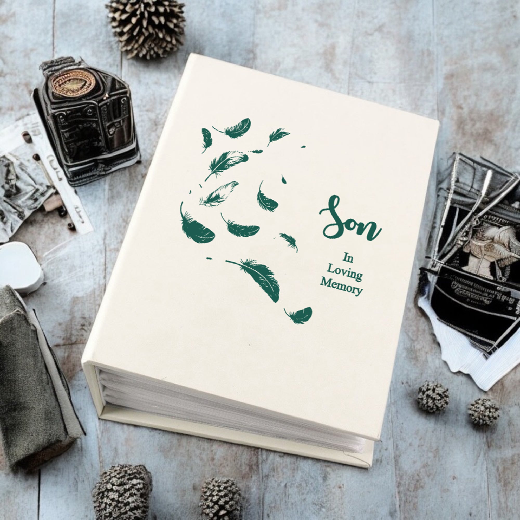Son In Loving Memory Feather Memorial Remembrance Photo Album With Sleeves 100 x 6x4 Capacity