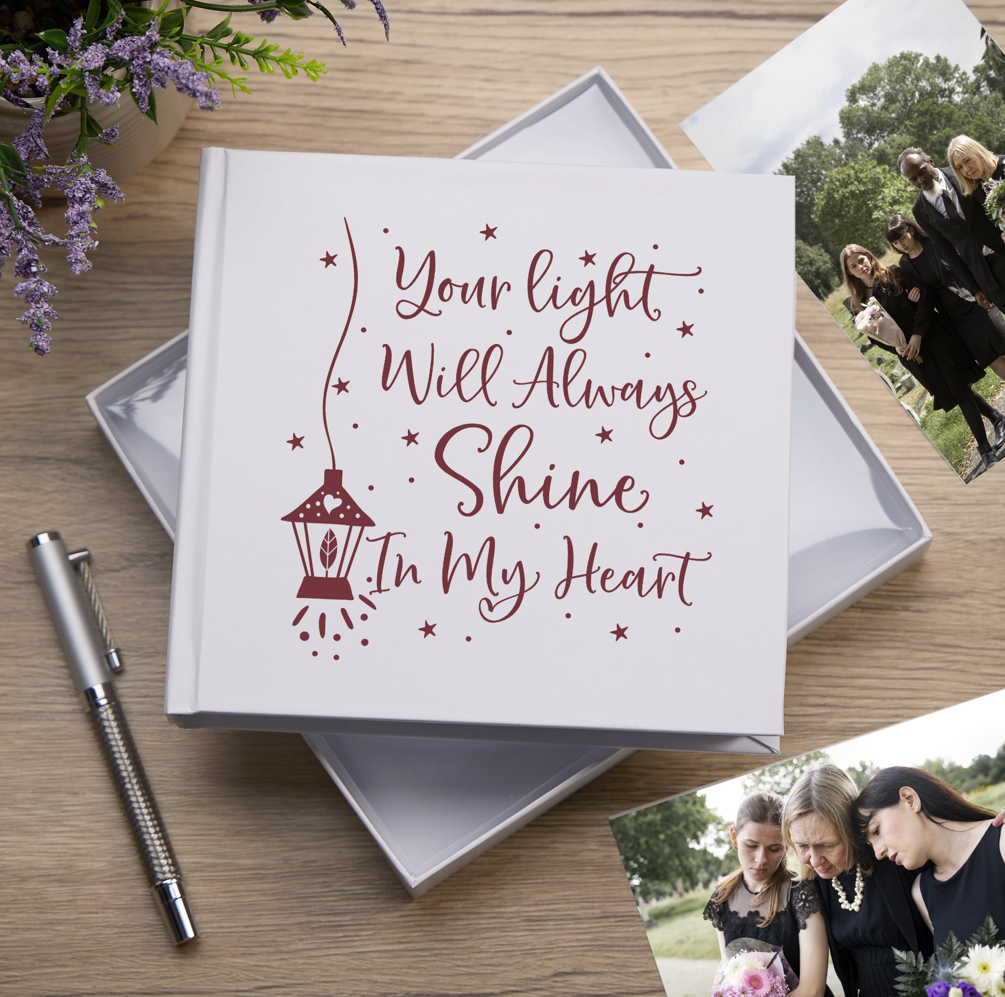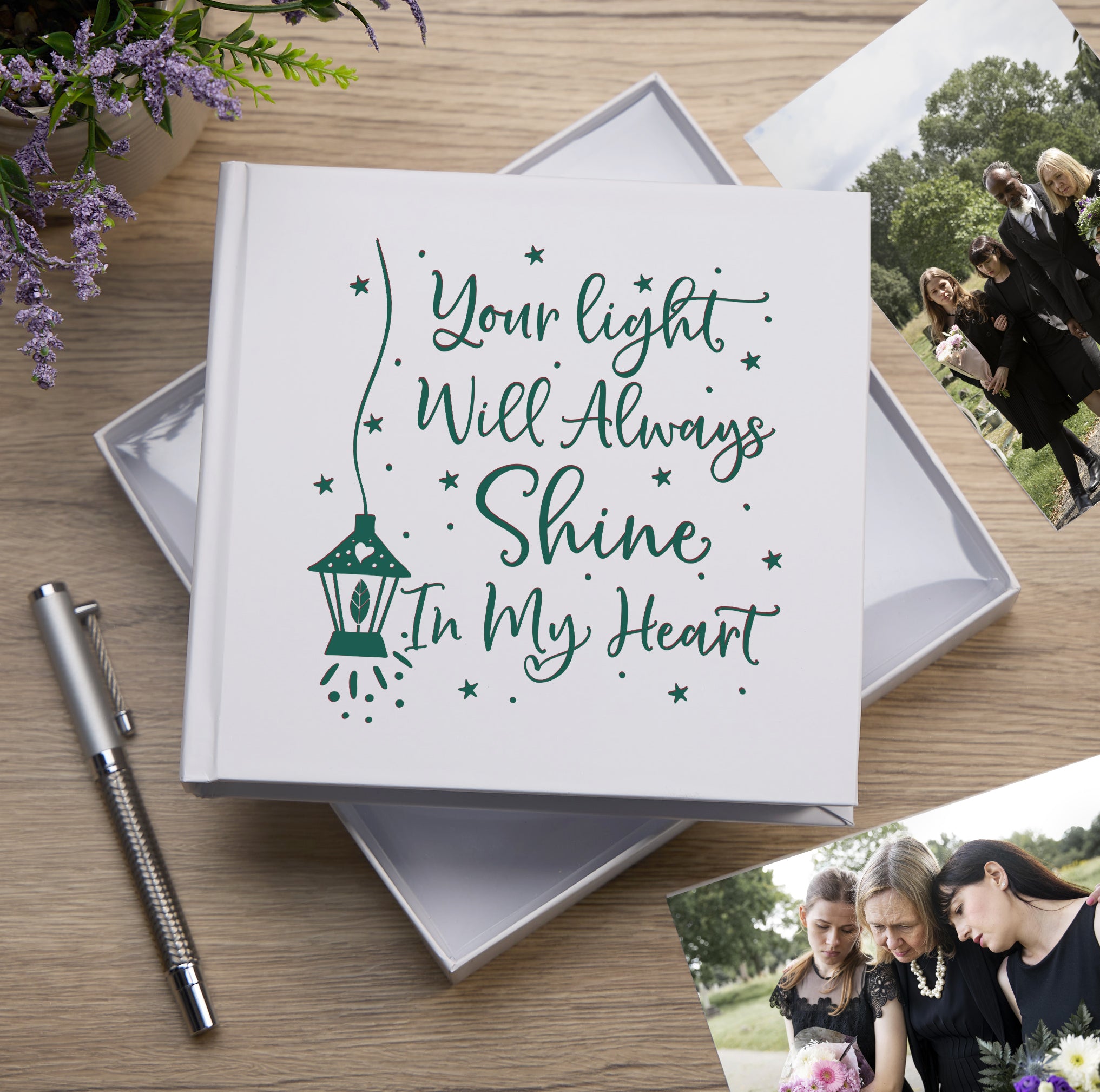 Your Light Will Always Shine White Memorial Remembrance Photo Album makes for a beautiful and practical way...