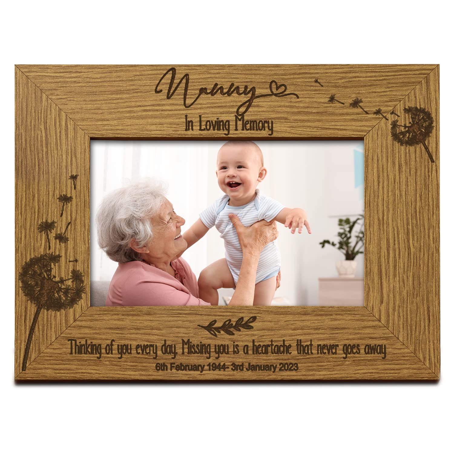 Nanny Remembrance Photo Frame Personalised Landscape With Dandelions