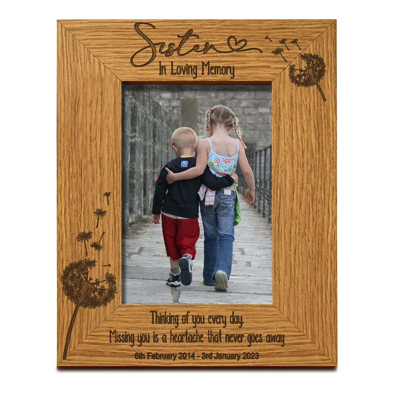 Sister Remembrance Photo Frame Personalised Portrait With Dandelions