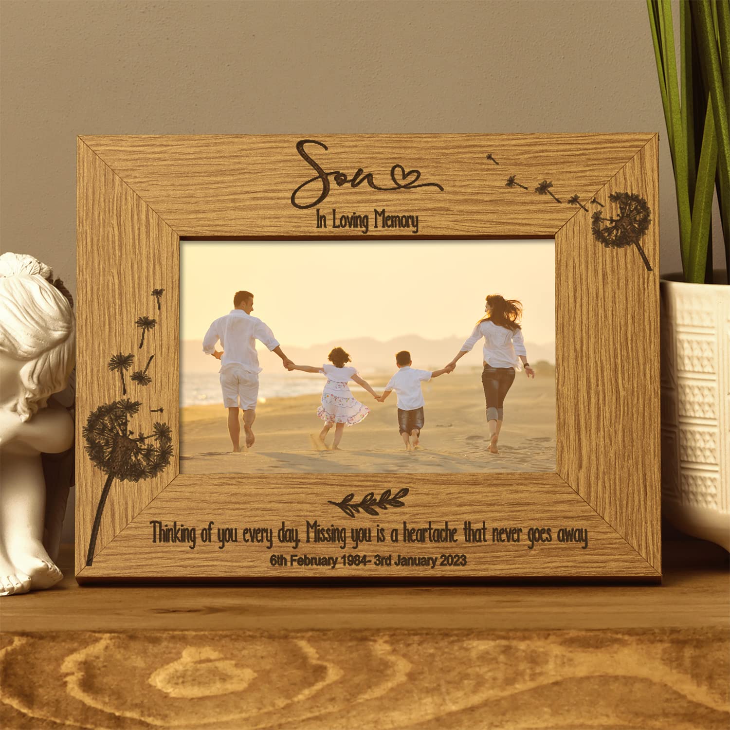 Son Remembrance Photo Frame Personalised Landscape With Dandelions