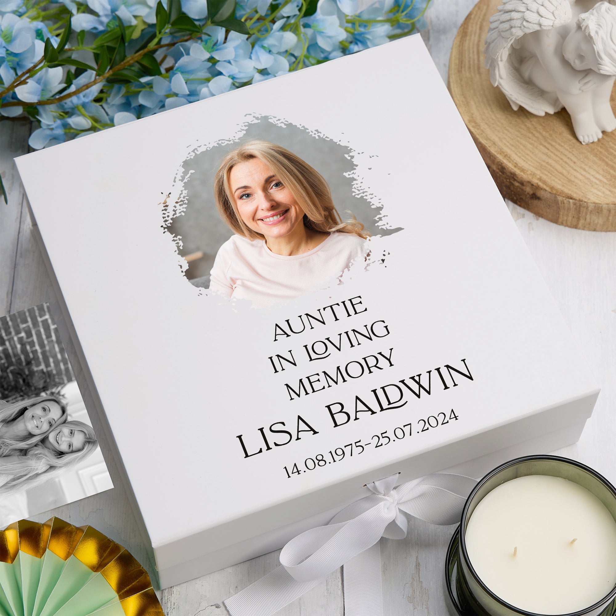 Personalised Auntie In Loving Memory White Keepsake Box With Photo For Condolence & Memory Treasure Sympathy Gift