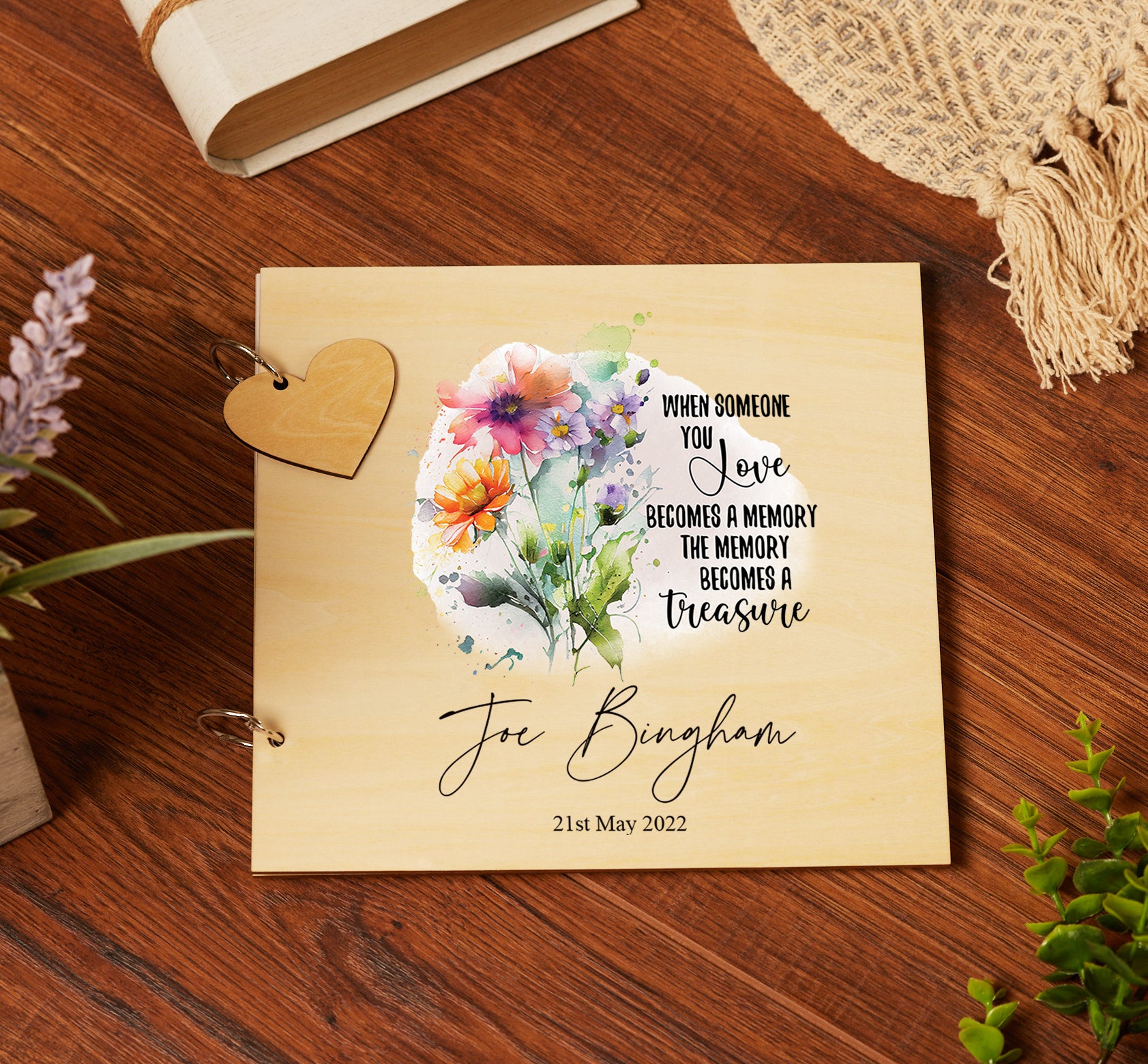 Personalised Wooden Remembrance Memorial Guest Book With Flowers