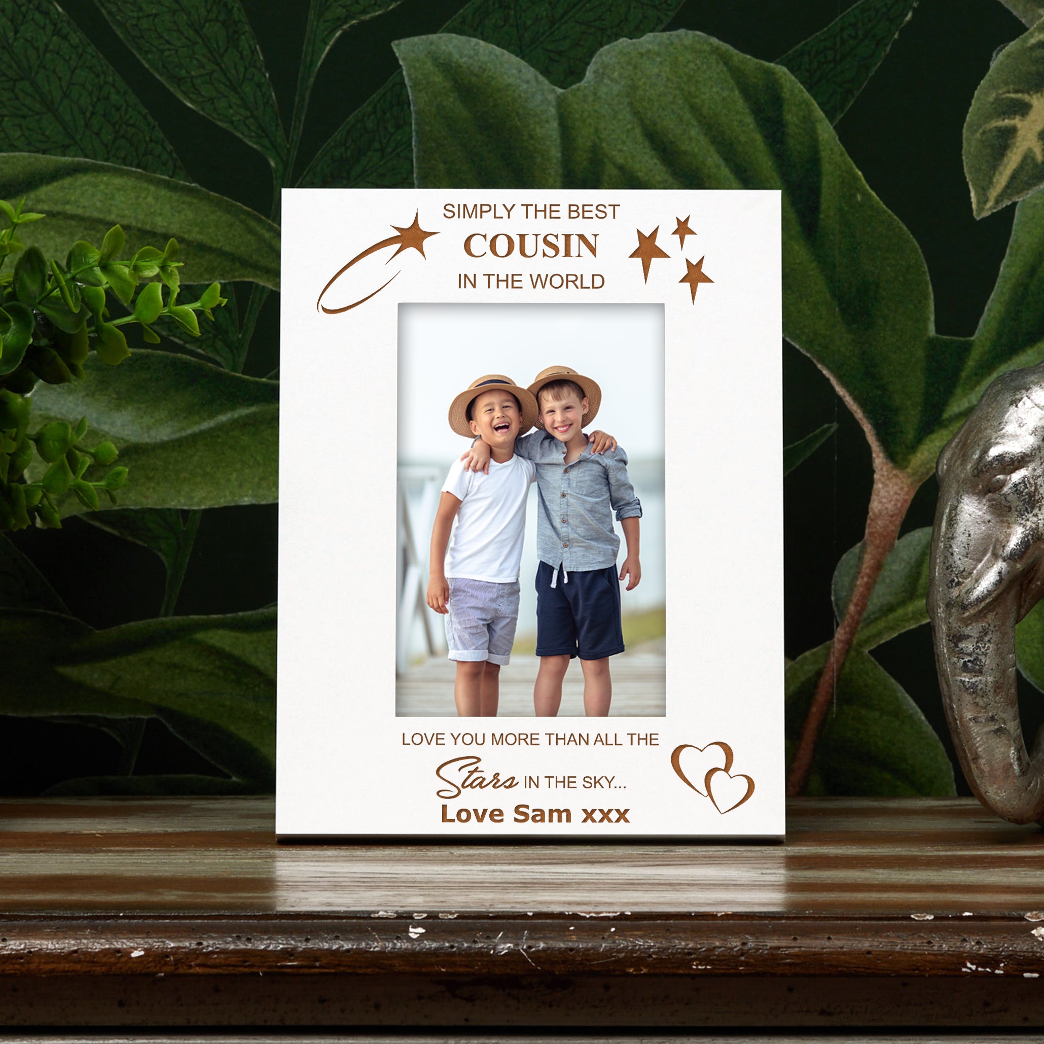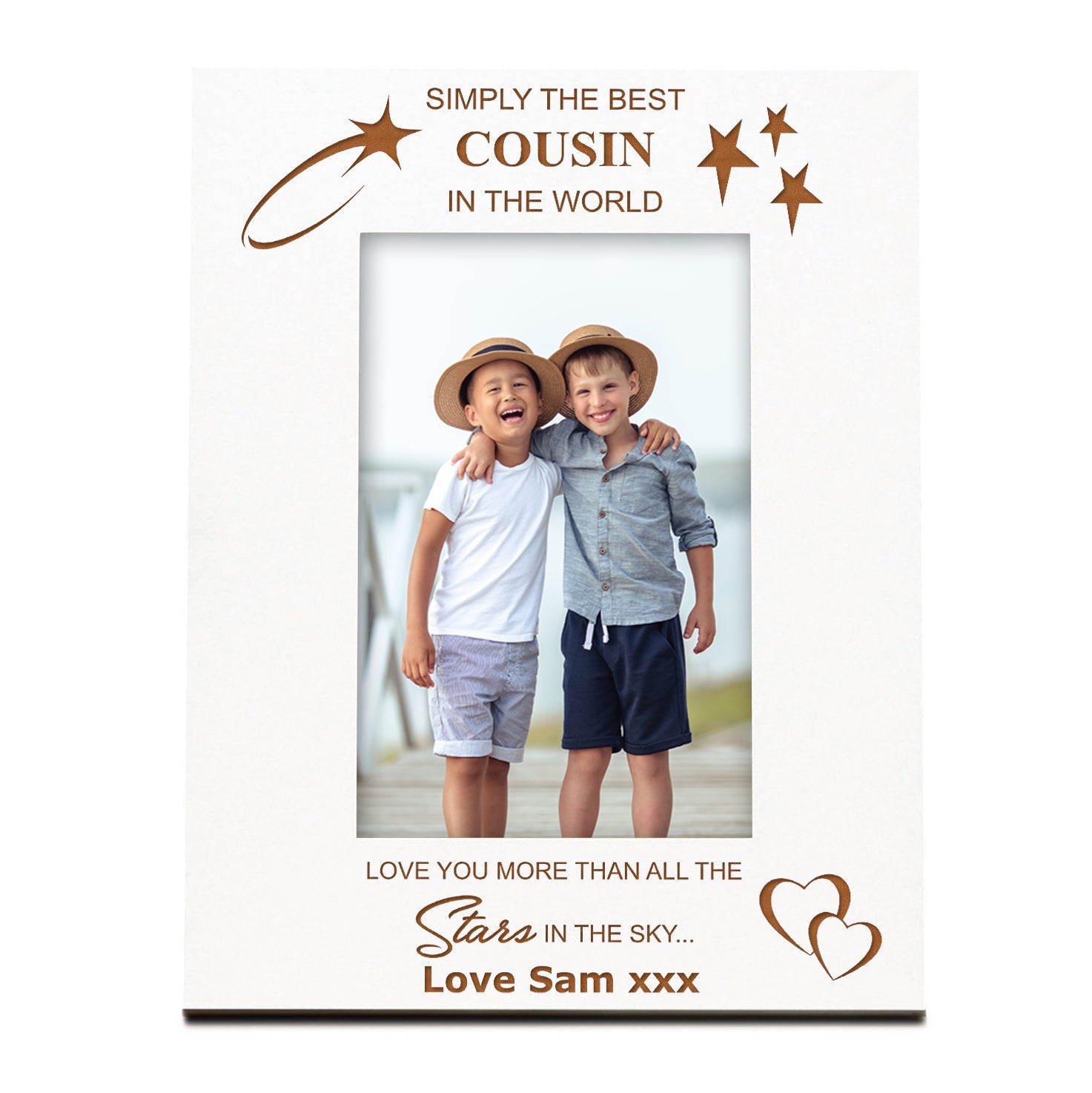 Personalised Cousin White Engraved Wooden Photo Frame Gift