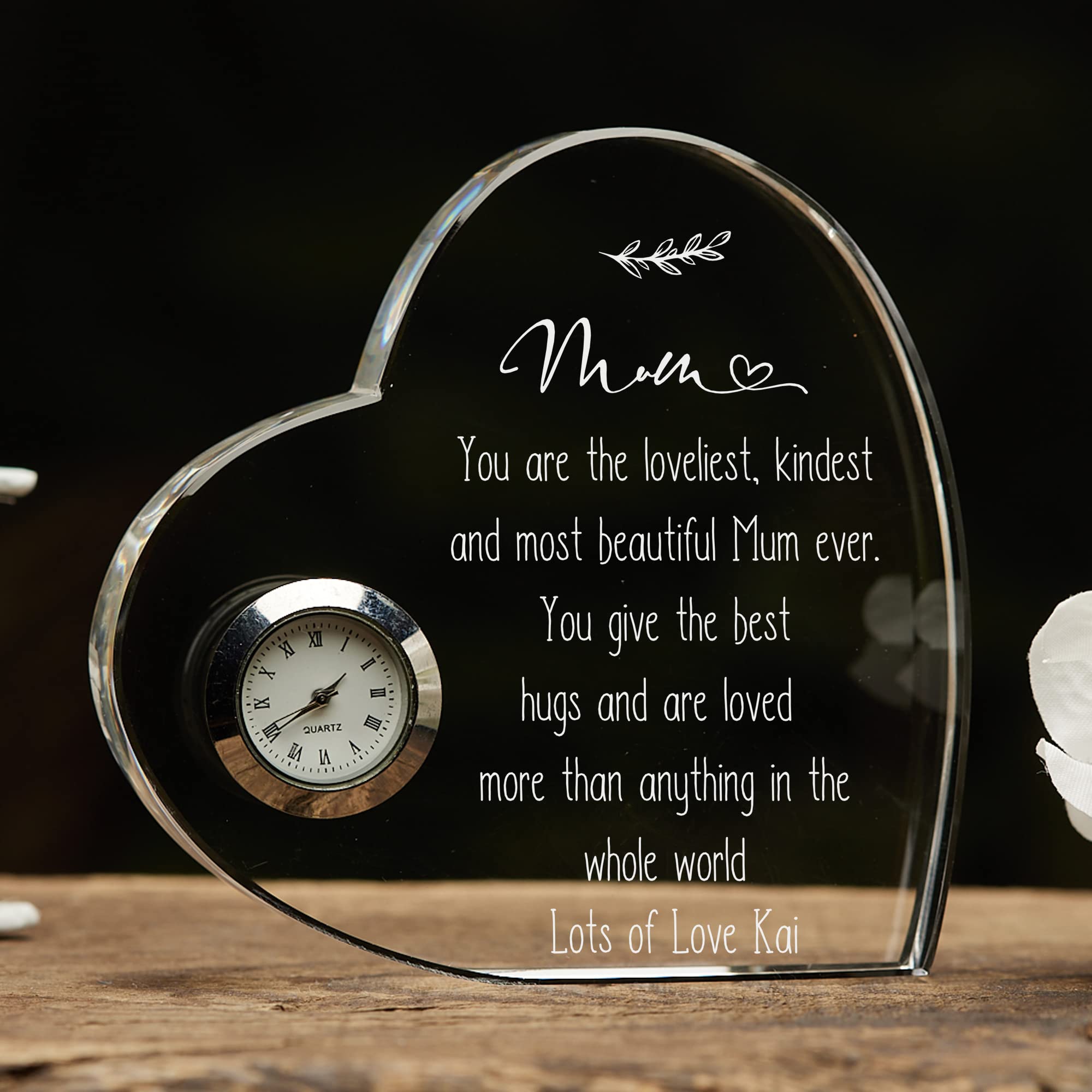 Engraved Personalised Mum Crystal Glass Clock With Sentiment