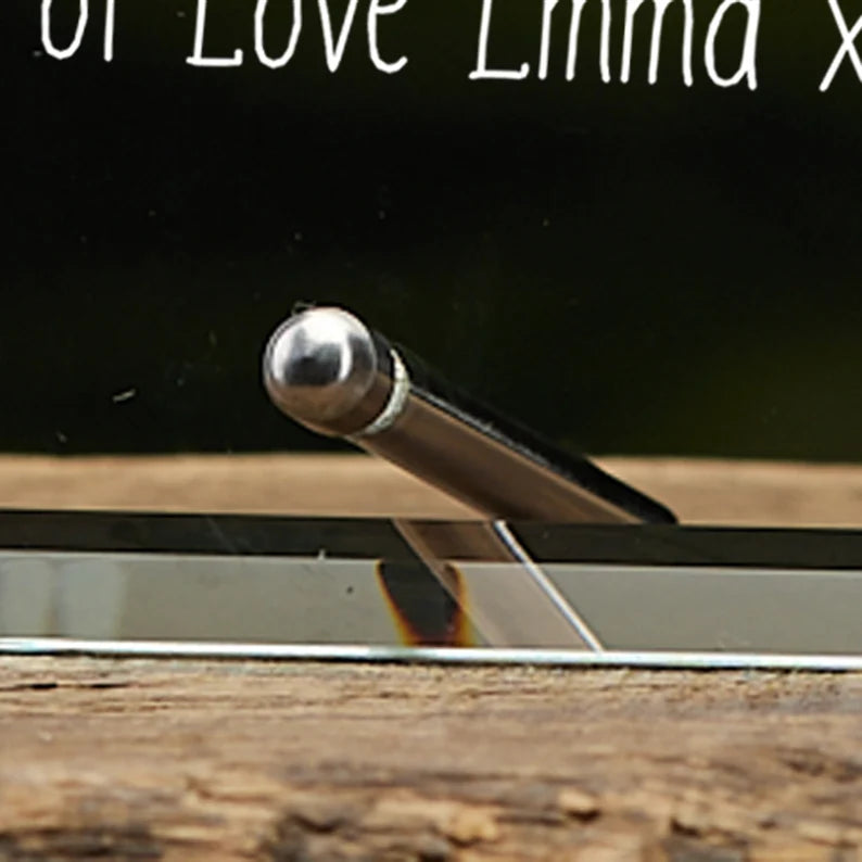 Comes with a sentiment and personalisation at the bottom Two sizes to choose from Small 6"x4" or Large 5" x 7" PLEASE NOTE THE PICTURE IS AN EXAMPLE TO SHOW THE STYLE OF TEXT - ENGRAVING CUTS OUT FROM THE GLASS AND HOLDS NO COLOUR