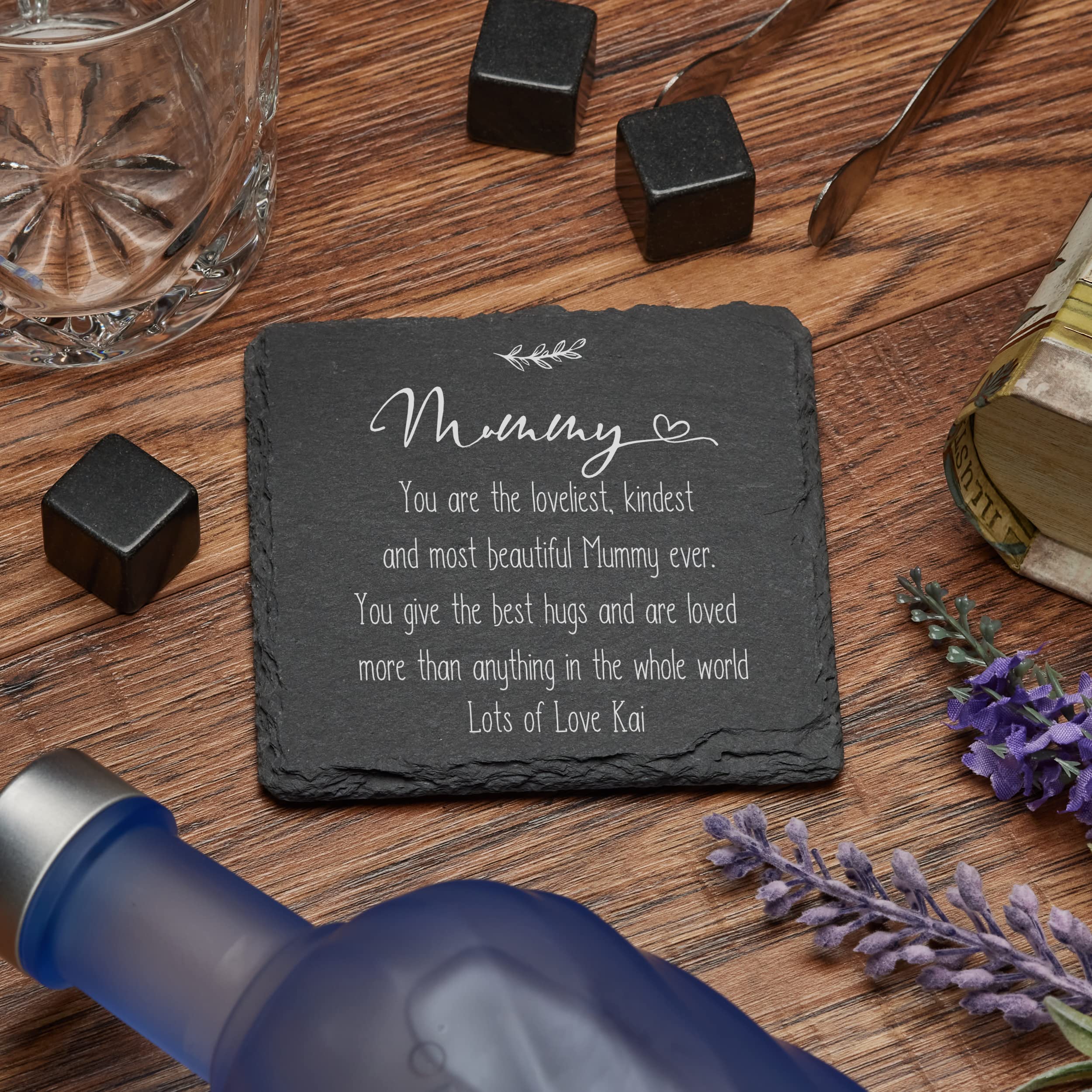 The slate measures 10cm and comes foam pads underneath to protect the furniture. As we only use the 100% natural raw slate and hand-cut it to shape, irregularities on the surface /sharp edges & corners and tiny chips off within the finished designs are to be expected.