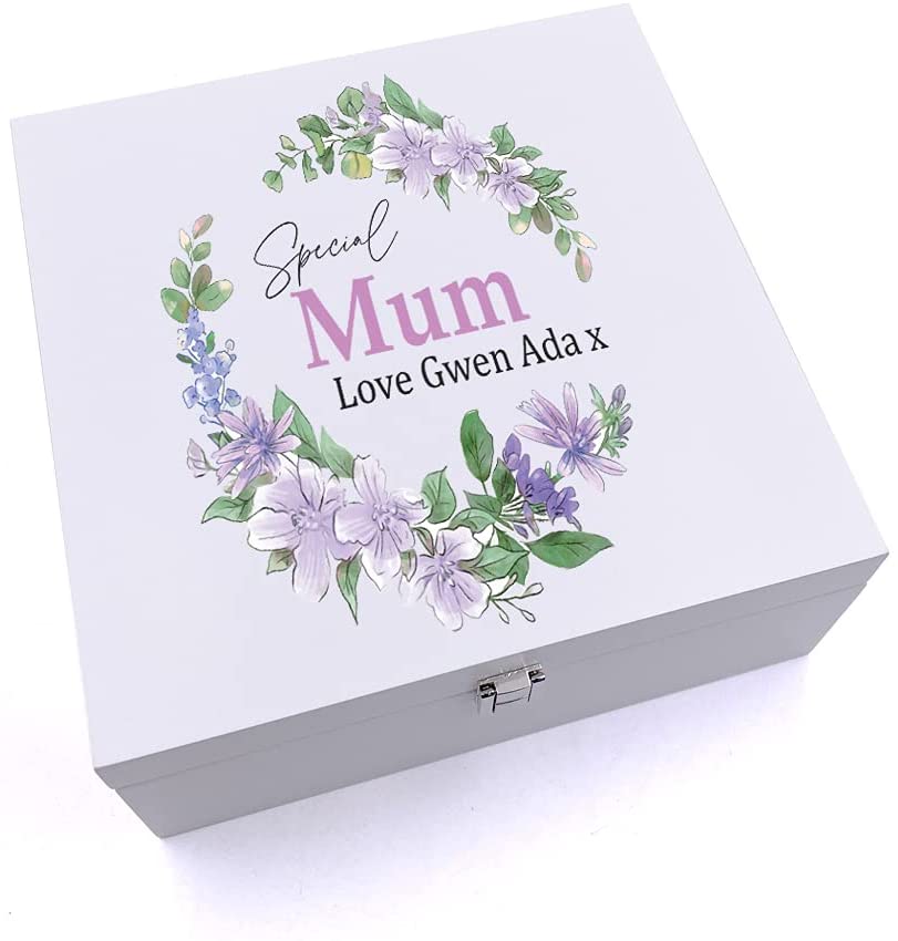 If you are looking for an extra special gift then these keepsake boxes are sure to be cherished and filled with mementos along the years. Perfect to fill with gifts, photos and other bits and bobs. Made from a white coated wood with your details printed directly onto the lid using the latest printing technology. The inside of the box has a natural wood finish. The boxes have beautiful chrome plated metal hinges and clasp to hold shut ensuring they last for years. Dimensions: H8 x W20 x D20cm