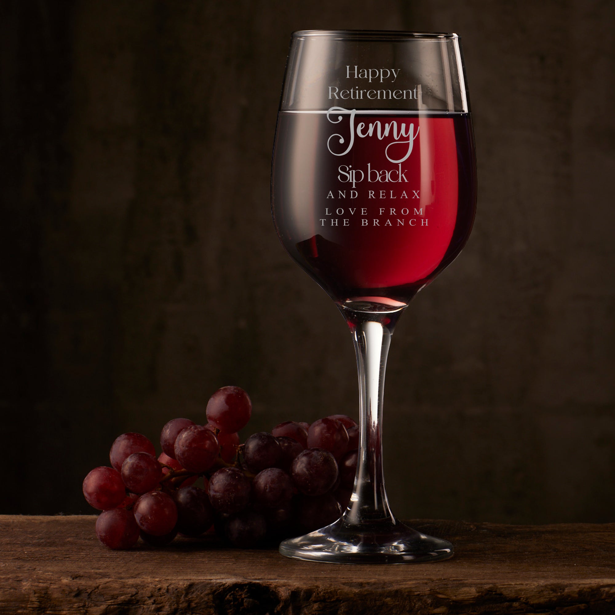 The perfect way to commemorate any milestone, this engraved wine glass is a unique and thoughtful retirement gift. With its personalized touch, the recipient will feel honored and appreciated. Plus, the high quality and durable glass ensures this gift will be cherished for years to come. Give the gift of memories and celebrate this special occasion with a personalized retirement wine glass.