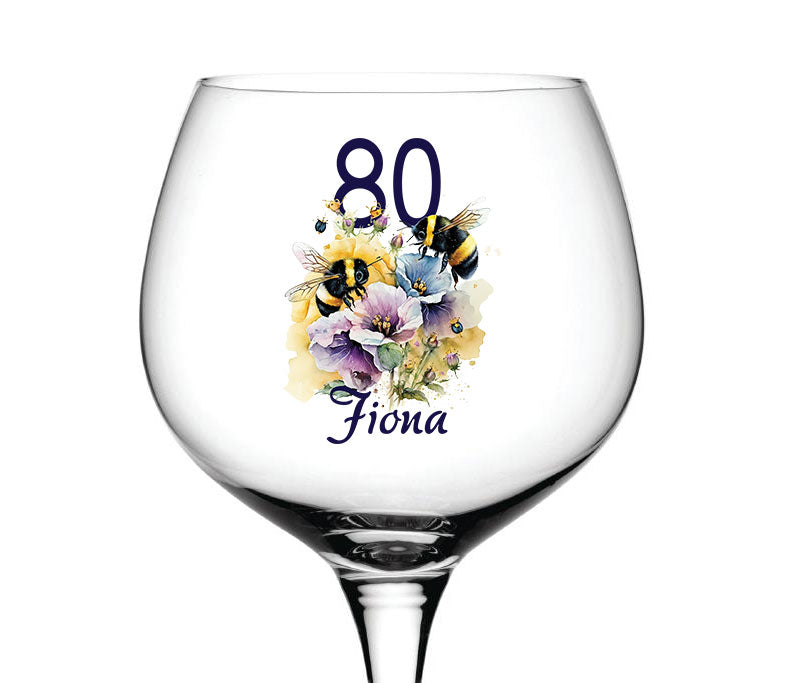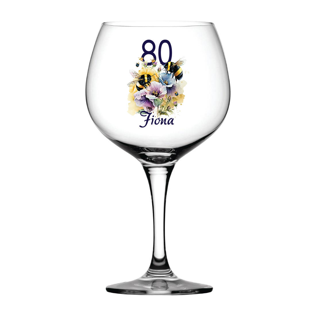 Personalised Any Age Birthday Cocktail Gin Glass Gift With Bees 18th 21st 30th 40th 50th 60th 70th 80th