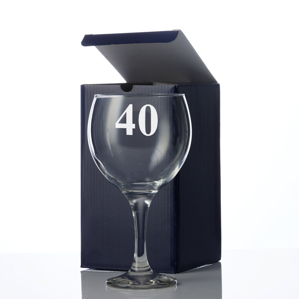 Our collection of bespoke gin cocktail glasses includes this long stem glass that can be personalised as you like. A perfect gift for someone’s 40th birthday, you can ask to add the recipient’s name and a small, cute sentiment on this glass. These gin cocktail glasses are the perfect size for people who love drinking and have a volume of 696ml. They are engraved using a laser inscription technique, which enhances the delicateness of these glasses. In addition, we ship all our glasses in lovely gift boxes that can be given directly to the recipient. So why not make that 40th landmark Birthday ever so special and celebratory.