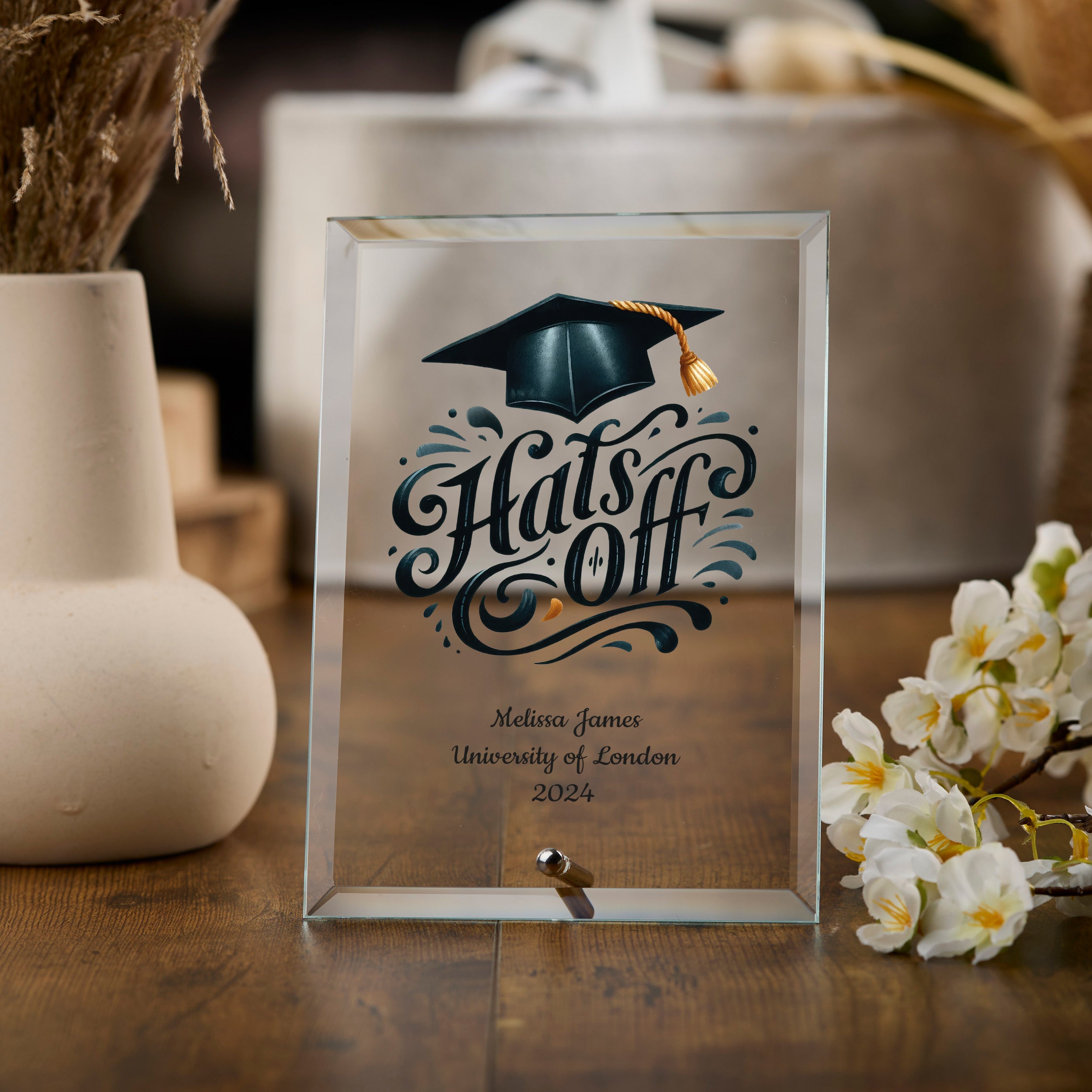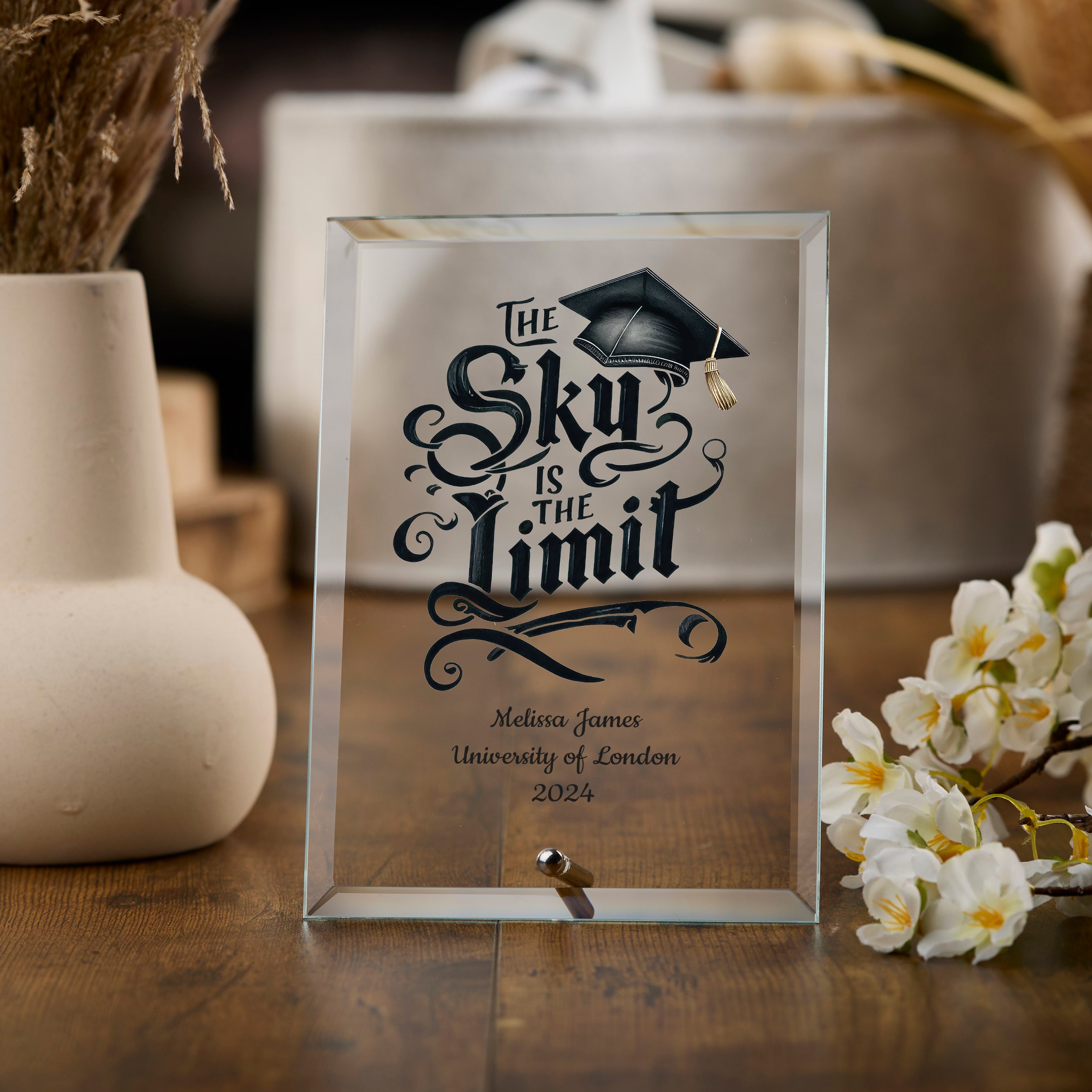 Expertly crafted and personalised just for you, this graduation keepsake gift is a genuine way to commemorate your loved one's special achievement. The beautiful glass plaque features a heartfelt sentiment and can be personalised for an extra special touch. It's the perfect way to show your pride and support for the new graduate in your life.