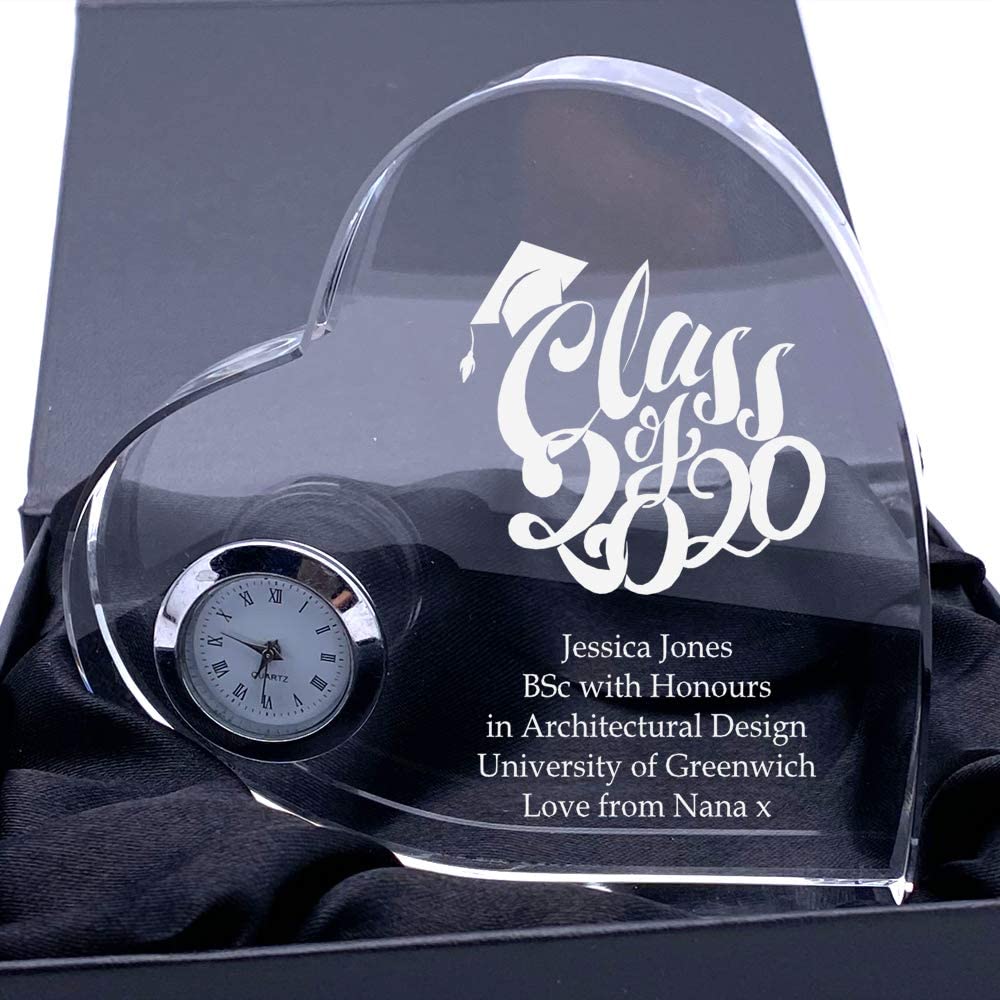 ukgiftstoreonline Gift For Graduate Engraved Heart Crystal Glass Clock