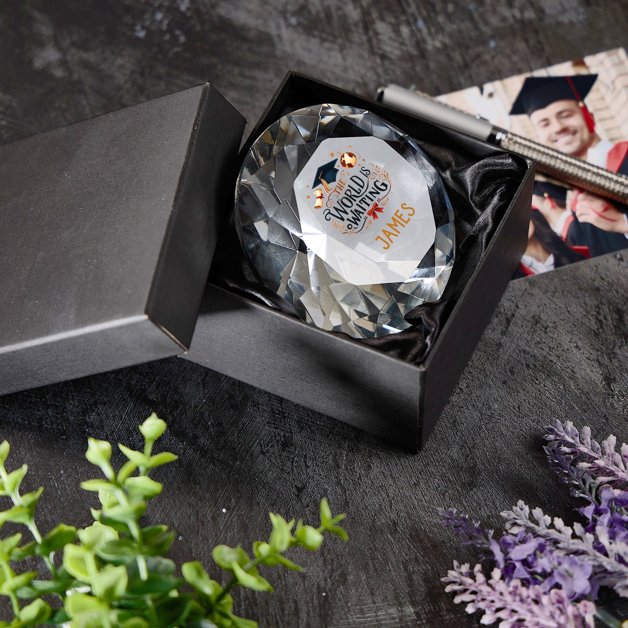 Personalised Graduation Gift Diamond Paperweight Gift World Is Waiting