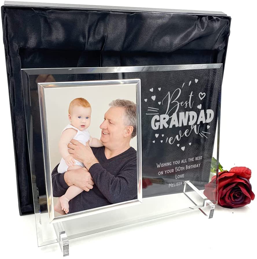Personalised Best Grandad Ever Large Glass Photo Frame In Silk Lined Gift Box A beautiful glass engraved...