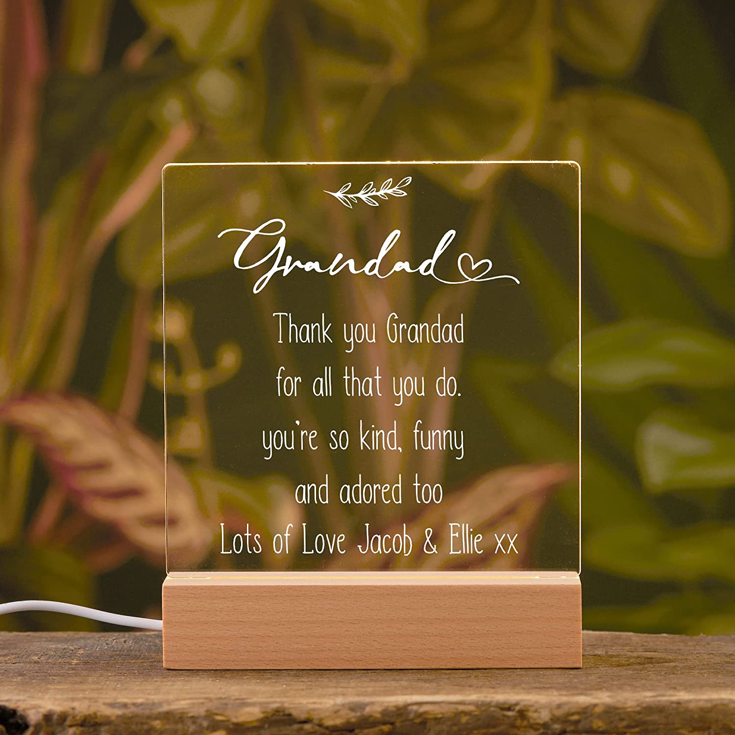 This lamp comes personalised So whether it be a birthday or a celebration there is no better unique gift. Powered by USB and has an on and off switch comes complete in a presentation box with instructions. Measure approx 22cm in height.