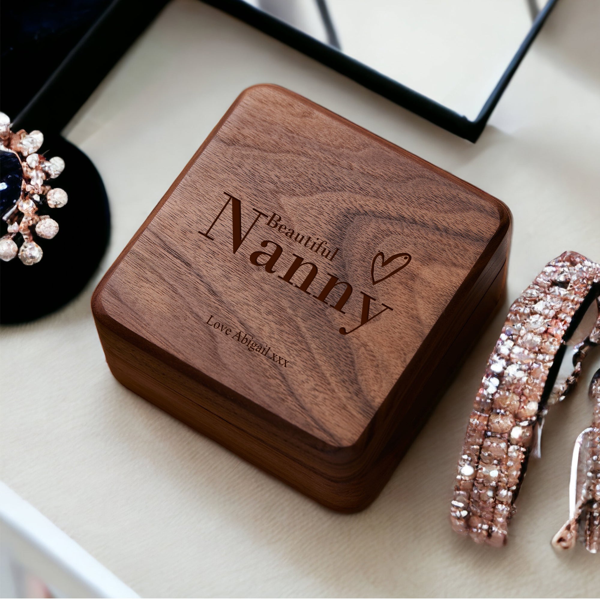 Personalised Nanny Jewellery Box Gift Luxury Walnut Wood Engraved