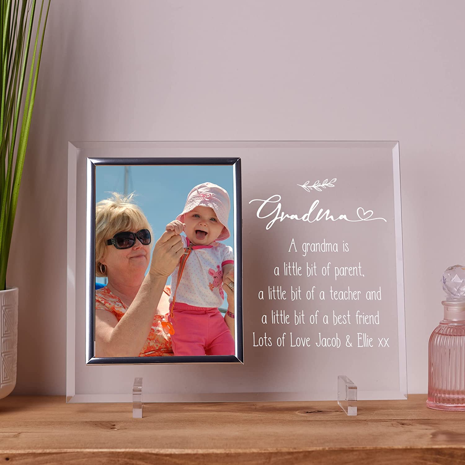 Customized Engraved Grandma Glass Photo Frame In Gift Box - Featuring Sentiment and Personalization  The frame is...