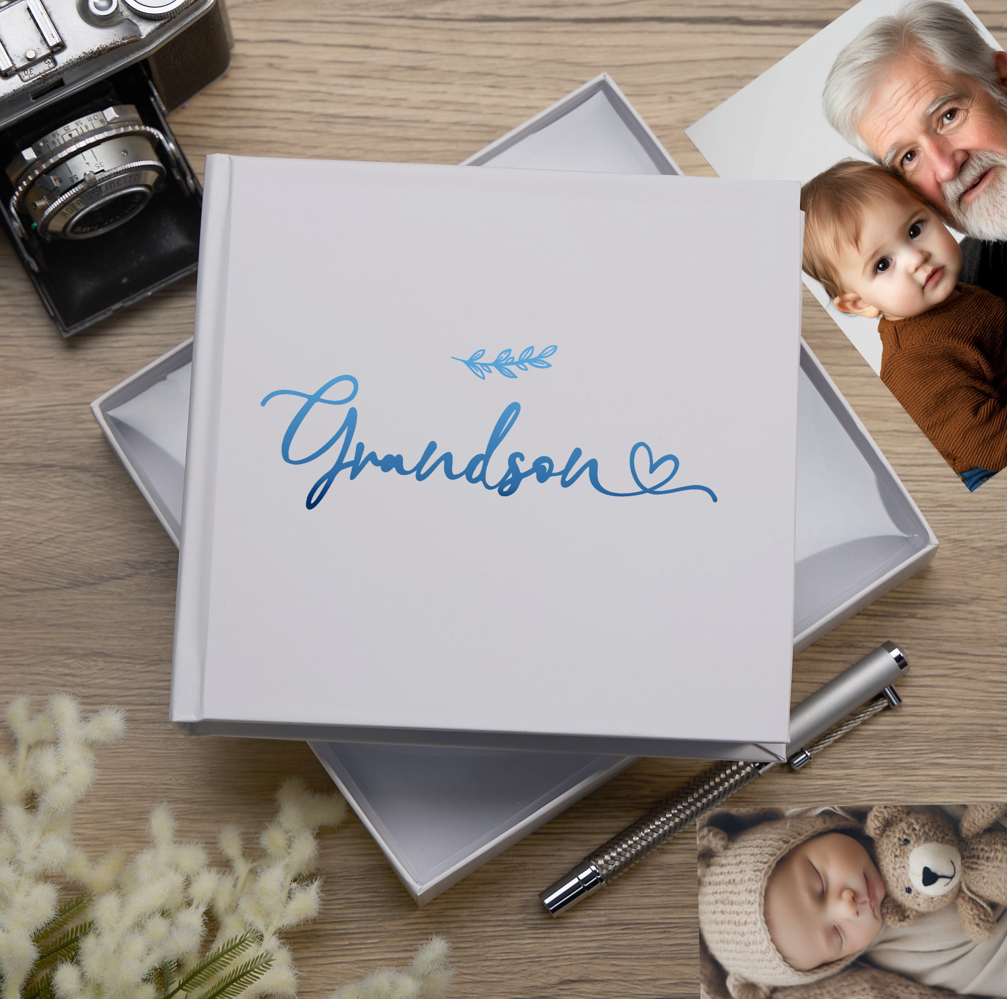 Preserve your memories in style with our Grandson White Photo Album. Each album holds up to 50 photos, making it perfect for capturing your most cherished moments. With easy slip-in photo slots and space for writing next to each photo, this album is designed to showcase your photos while keeping them safe for years to come. Measuring approximately 18.5cm x 19.5cm, this album comes boxed and is the ideal keepsake gift for yourself or a loved one.