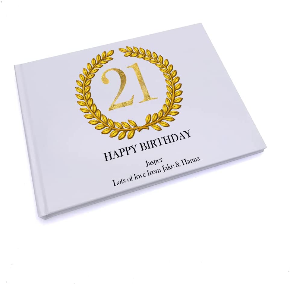 Personalised 21st Birthday Gift for Him Guest Book Gold Wreath Design