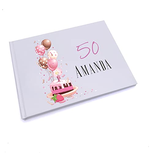 Custom 50th Birthday Keepsake for Women's Guestbook. A stunning guest book in white colour with Lined Hard...
