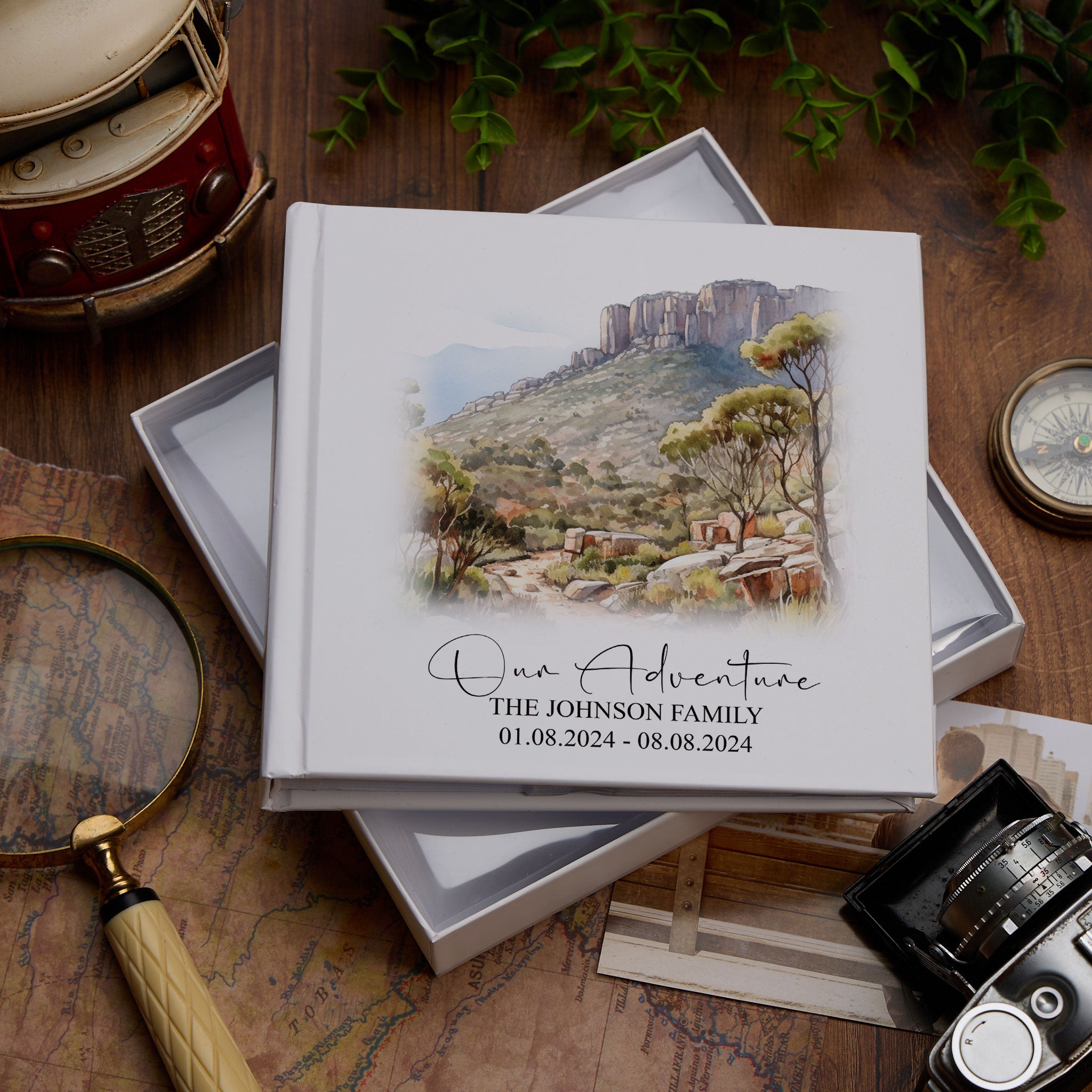 This photo album makes the perfect travel companion. Each album features a personalised cover and can hold up to 50 photos, sized 4" x 6", with room for writing next to each one. The album size is approximately 18.5cm x 19.5cm, and it comes neatly boxed for the ideal keepsake gift.