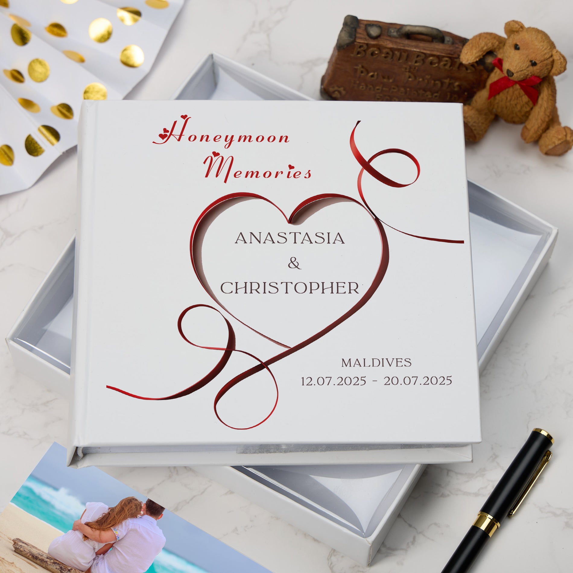 Personalised Elegant Honeymoon Memories Heart Photo Album Honeymoon Memory Keepsake Album