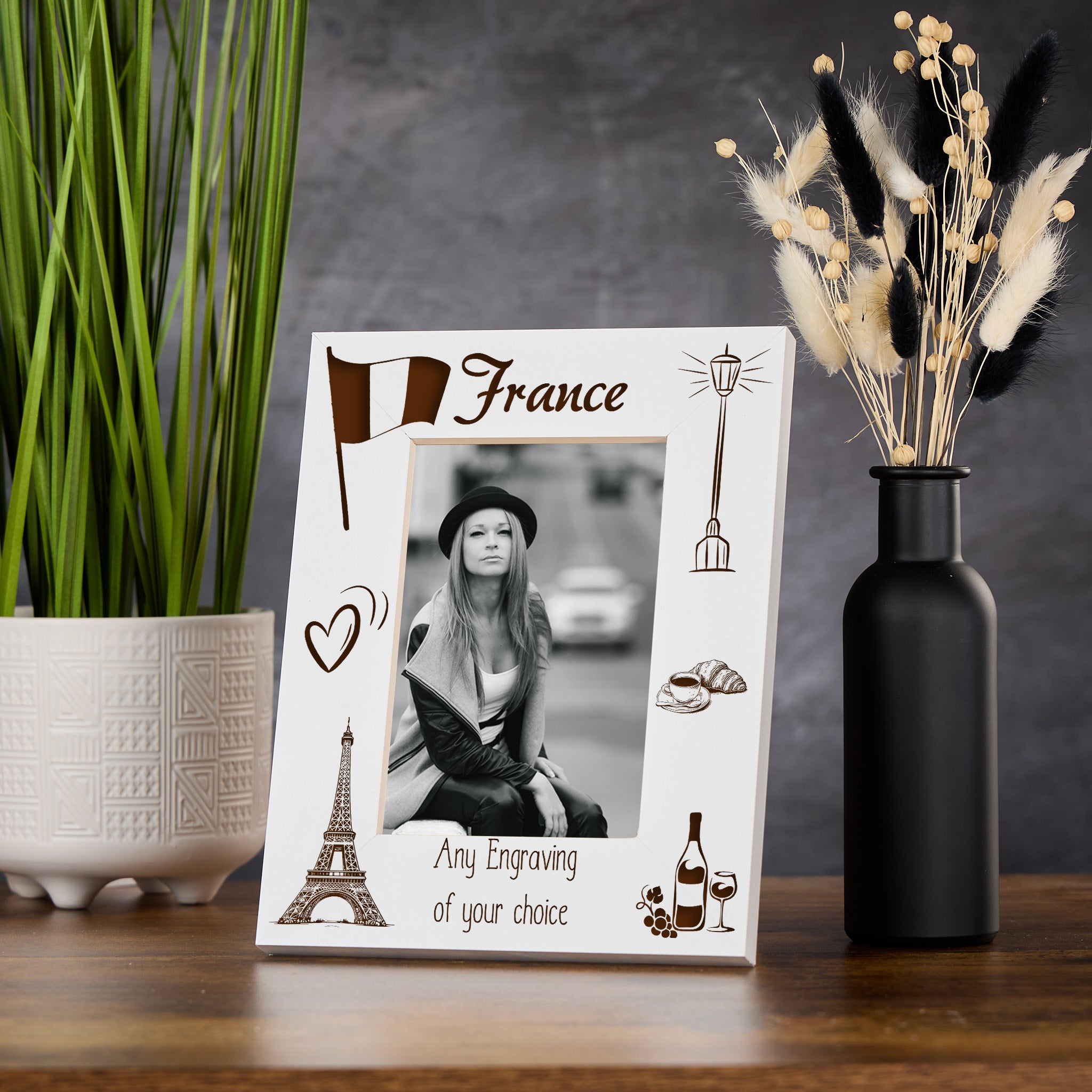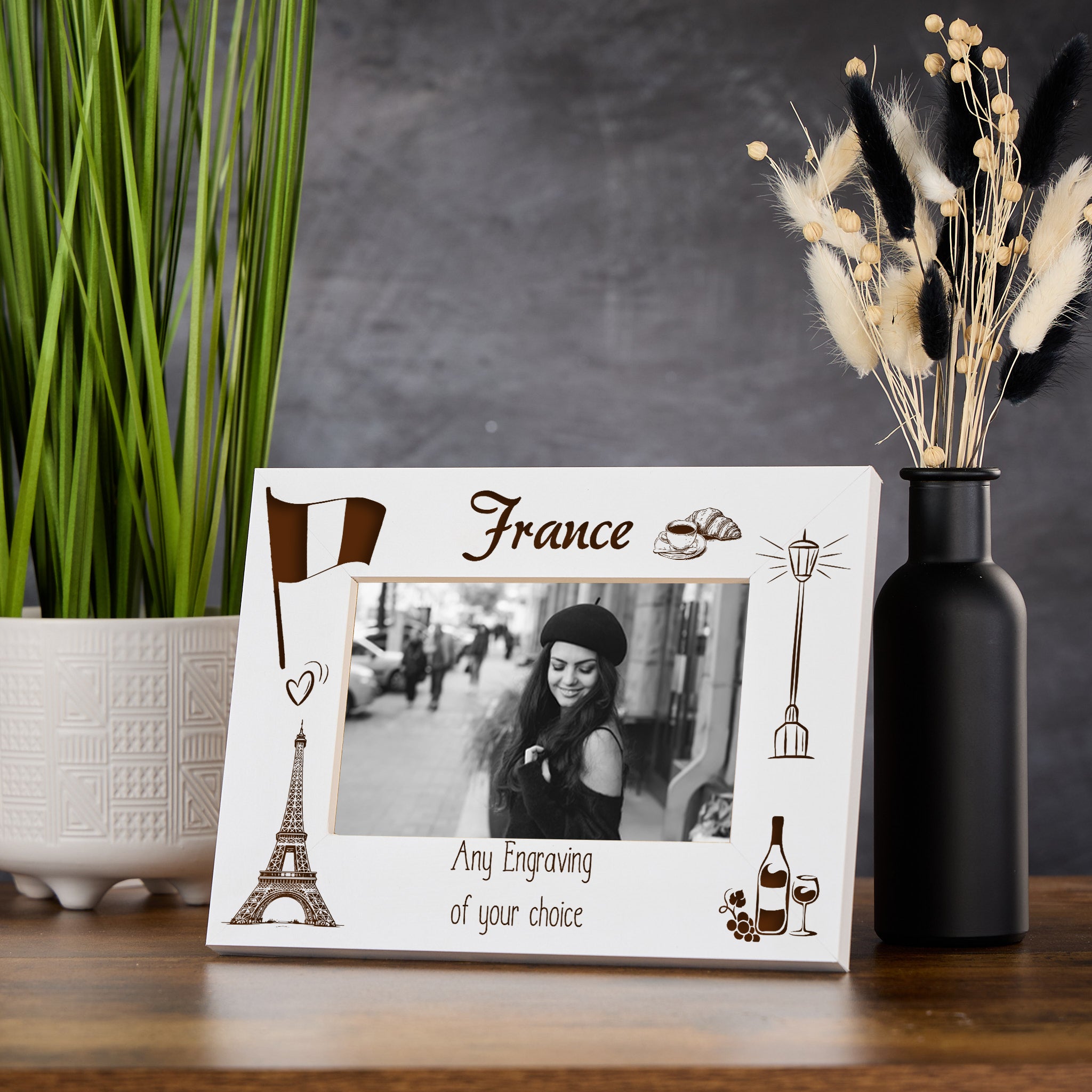 This customised photo frame for France holiday memories is engraved with a personal touch. Expertly crafted with precision,...