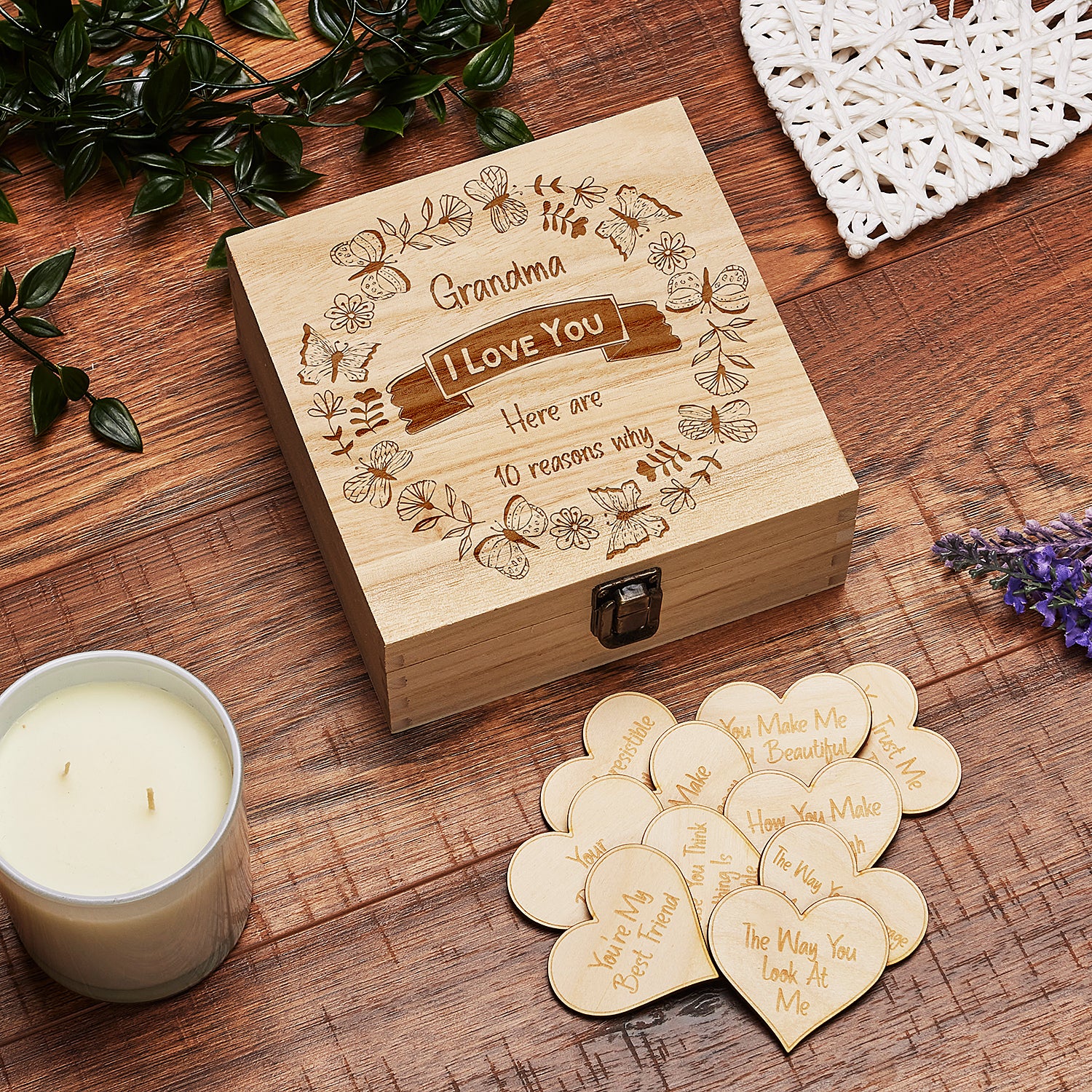 Grandma Gift 10 Reasons why I Love You Wooden Box and Hearts SHB-22 - ukgiftstoreonline
