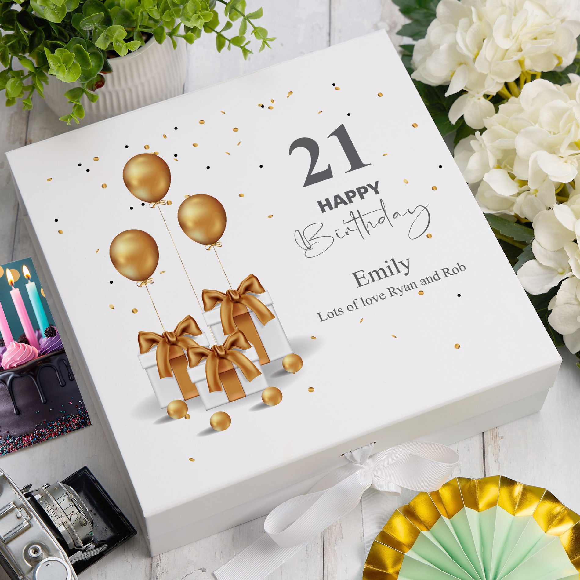 Personalised 21st Birthday Keepsake Memory Box Gold Presents